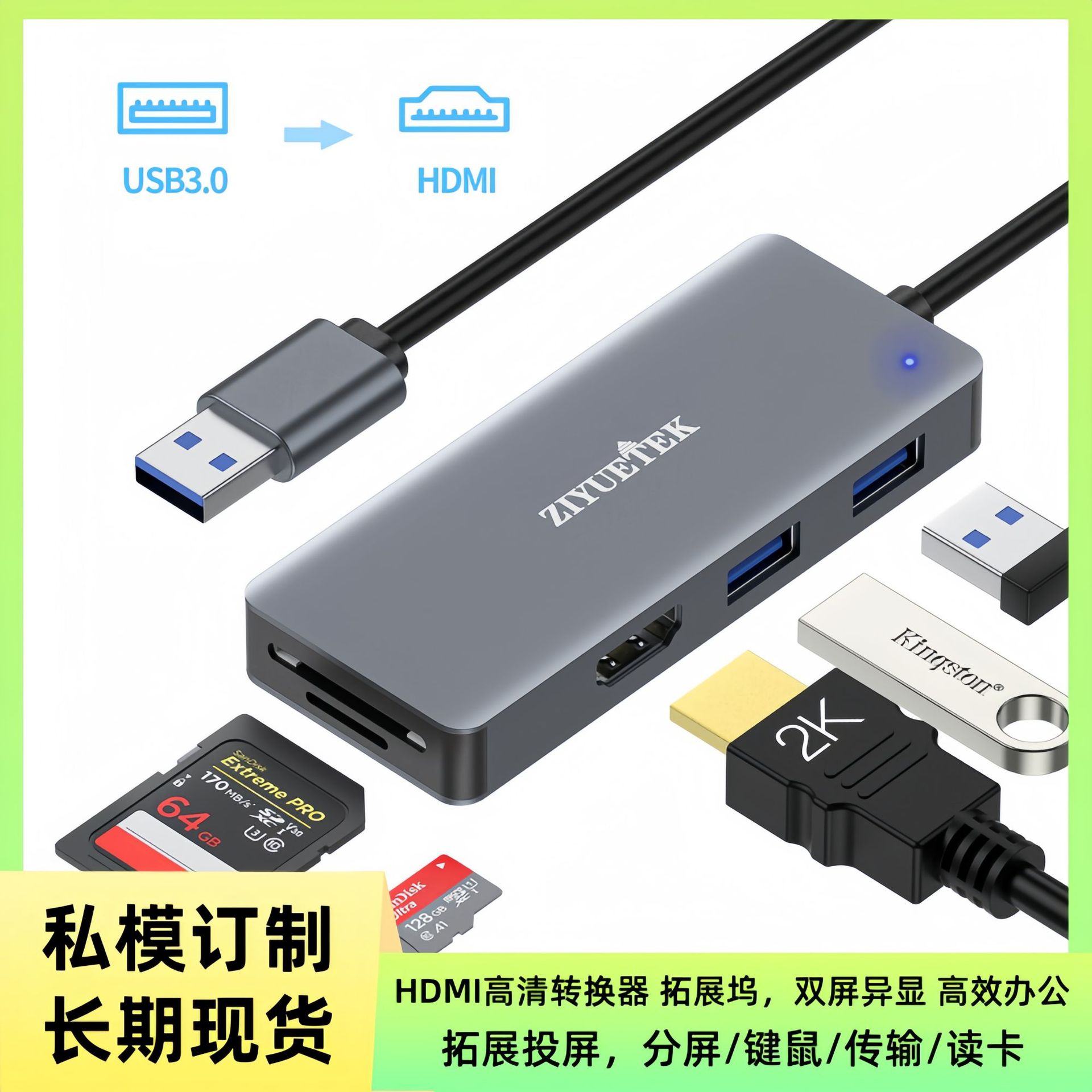 此产品需安装驱动(自带驱动盘) USB 3.0转HDMI USB hub + SD+TF
