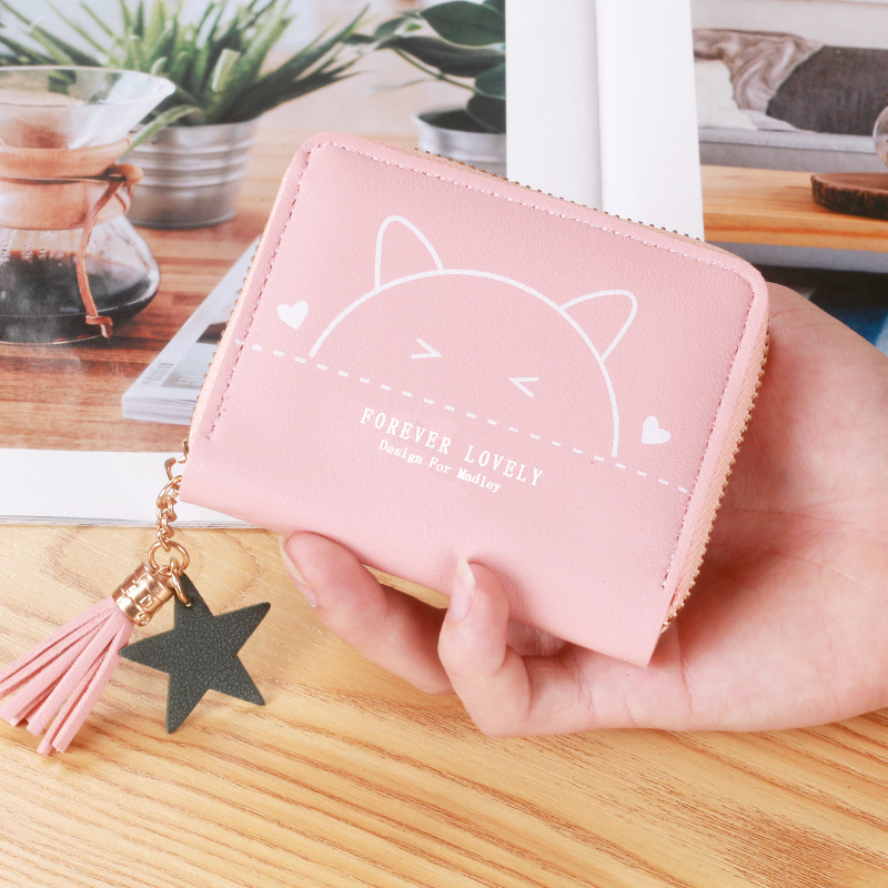 새로운 여성의 간단한 신선한 스타일 짧은 동전 지갑 소녀의 지퍼 술 PU 인조 가죽 카드 홀더 뜨거운 판매스토어 가기