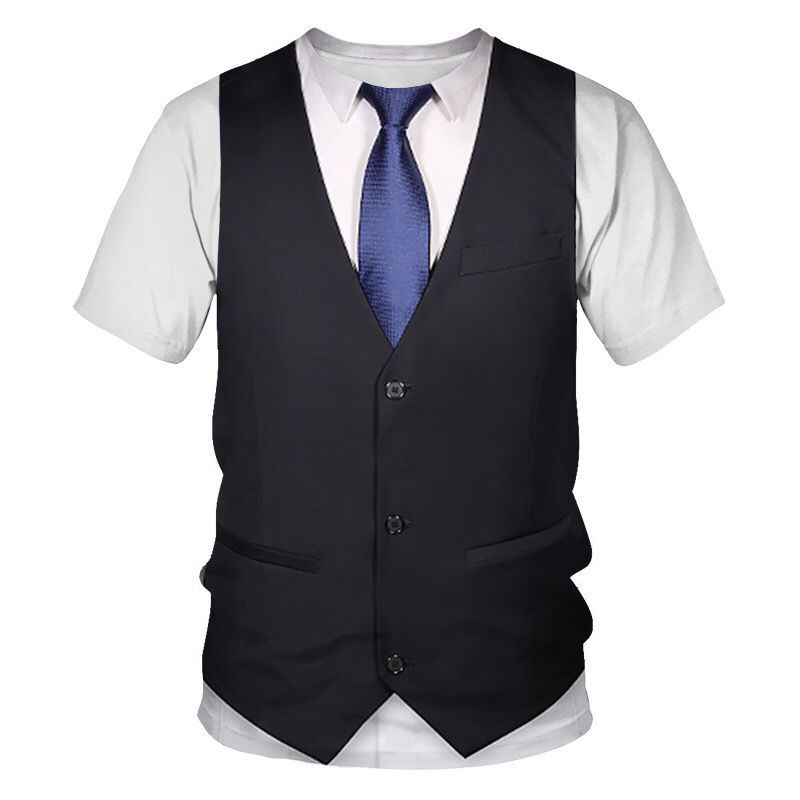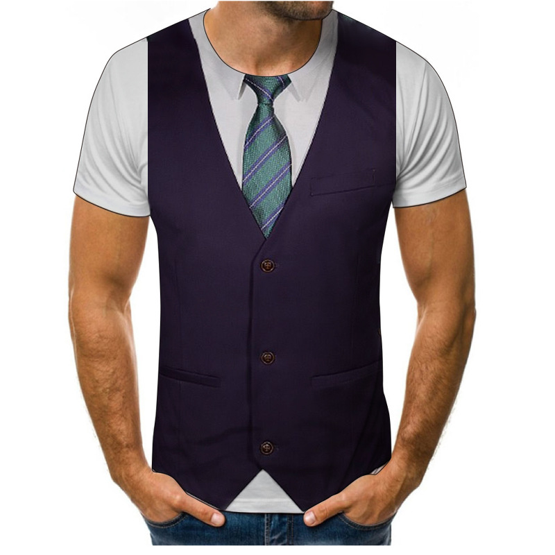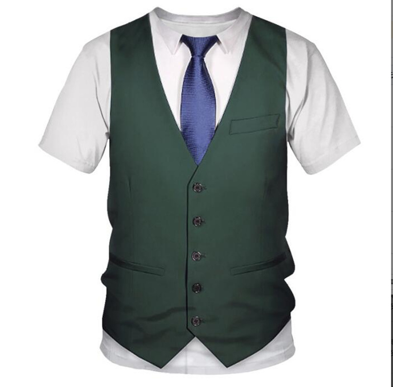 여름 패션 폭발 가짜 두 남자 티셔츠 3D 디지털 인쇄 반팔 상단 공장 콘센트스토어 가기