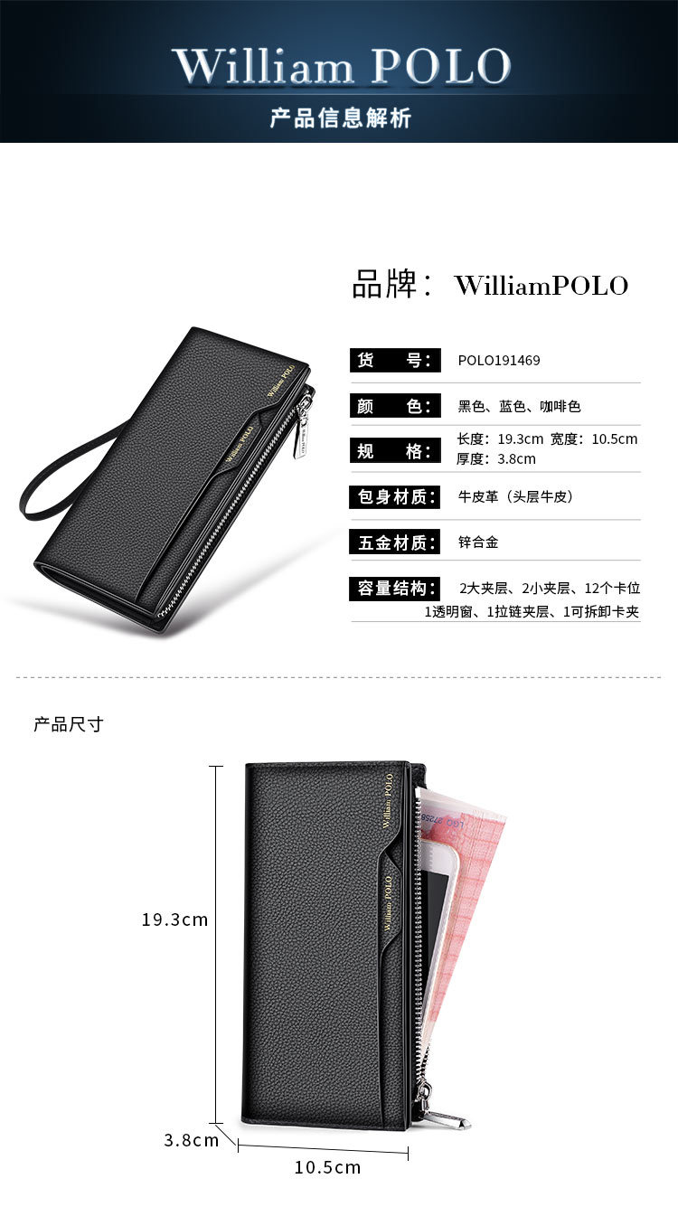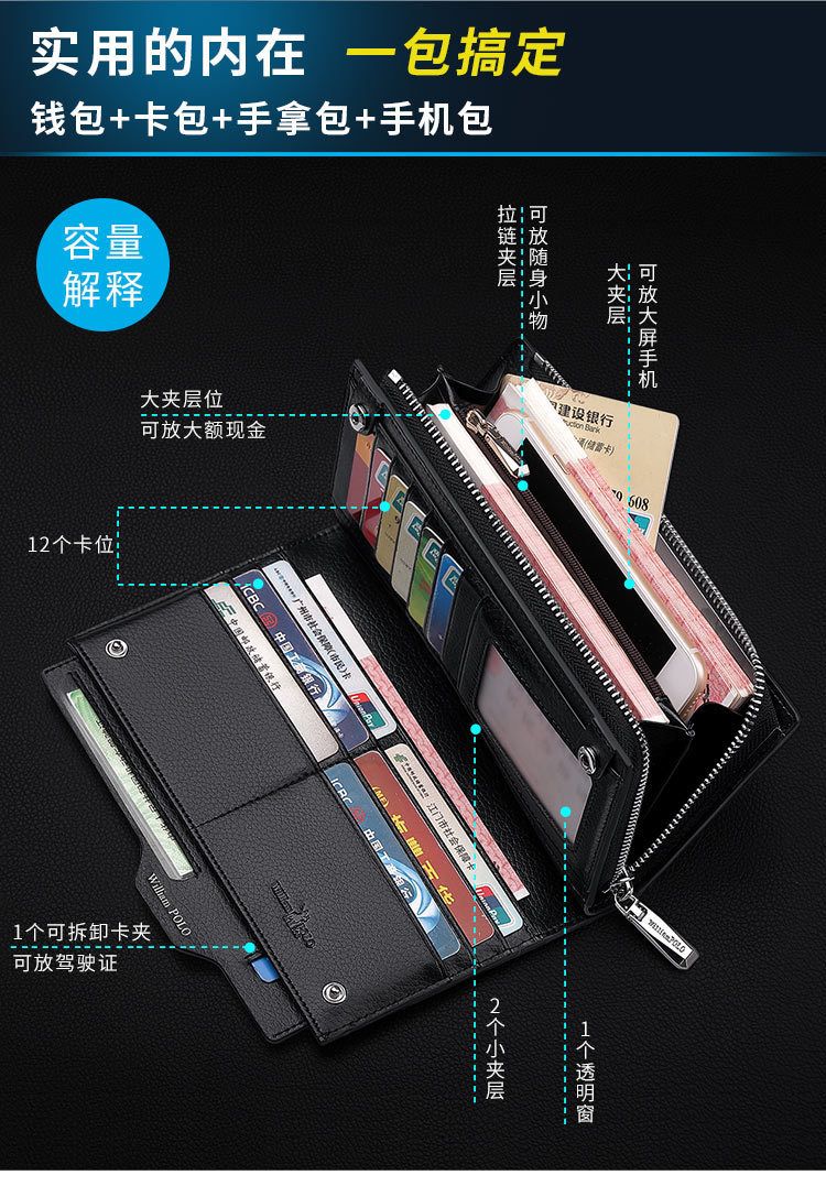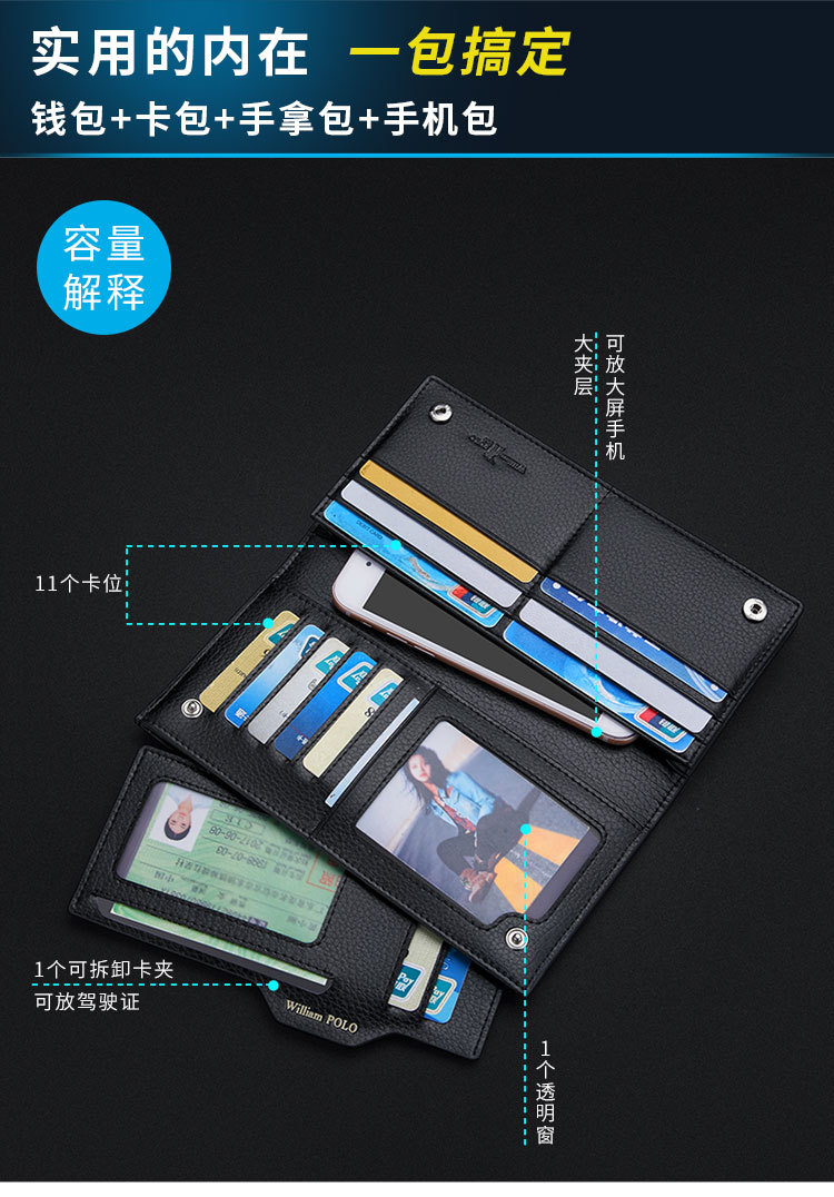 영황폴 정품 가죽 남성 지갑 2026 신형 롱 스타일 다중 카드 슬롯 대용량 핸드백 카드홀더 지갑 도매스토어 가기