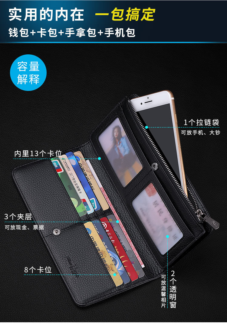 영황폴 정품 가죽 남성 지갑 2026 신형 롱 스타일 다중 카드 슬롯 대용량 핸드백 카드홀더 지갑 도매