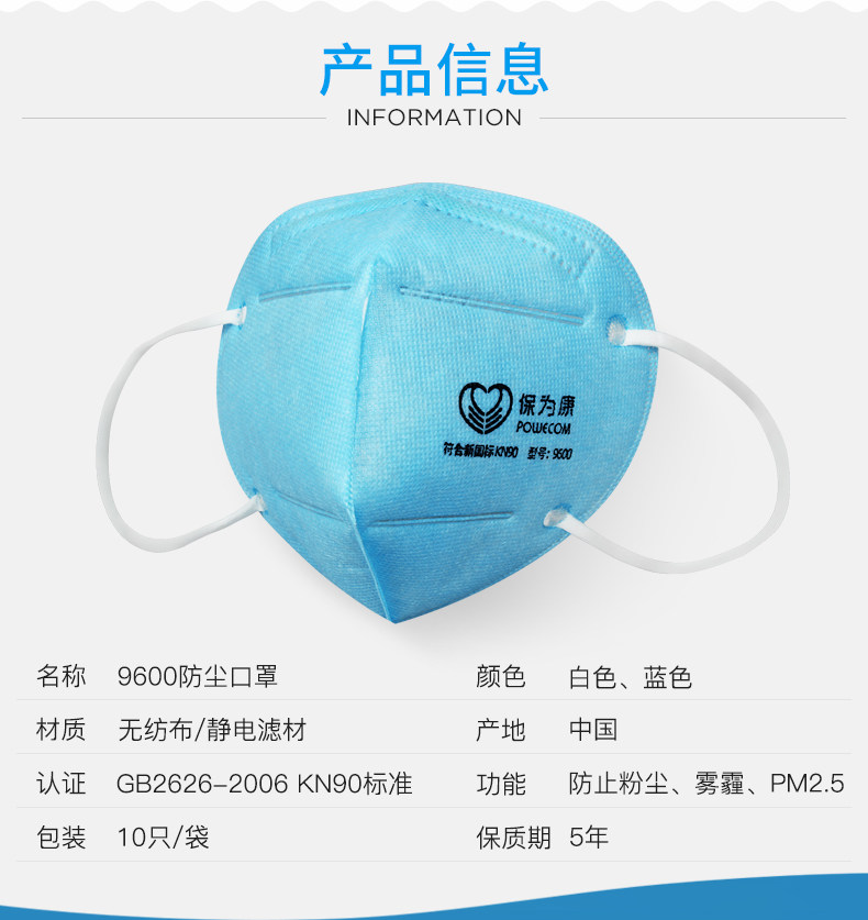Baoweikang KN90 마스크 9600 9611 일회용 산업용 방진 및 통기성 시민 노동 보호 이어 밴드 헤드 마운트스토어 가기