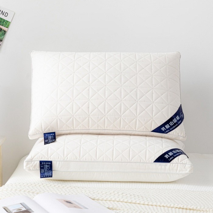 本款枕芯为立体纯棉面料,单面绗缝一层薄乳胶,填充为特柔羽丝绒,可调节枕芯高度!