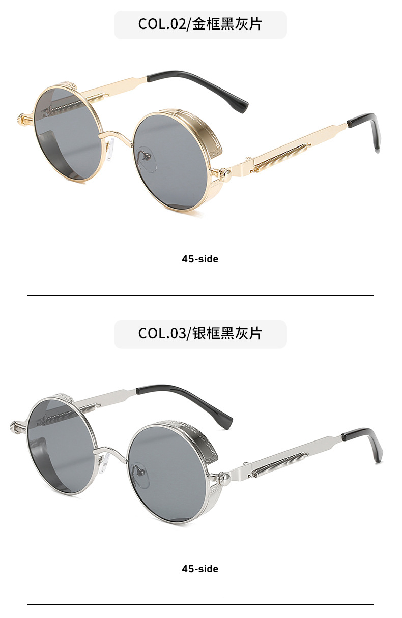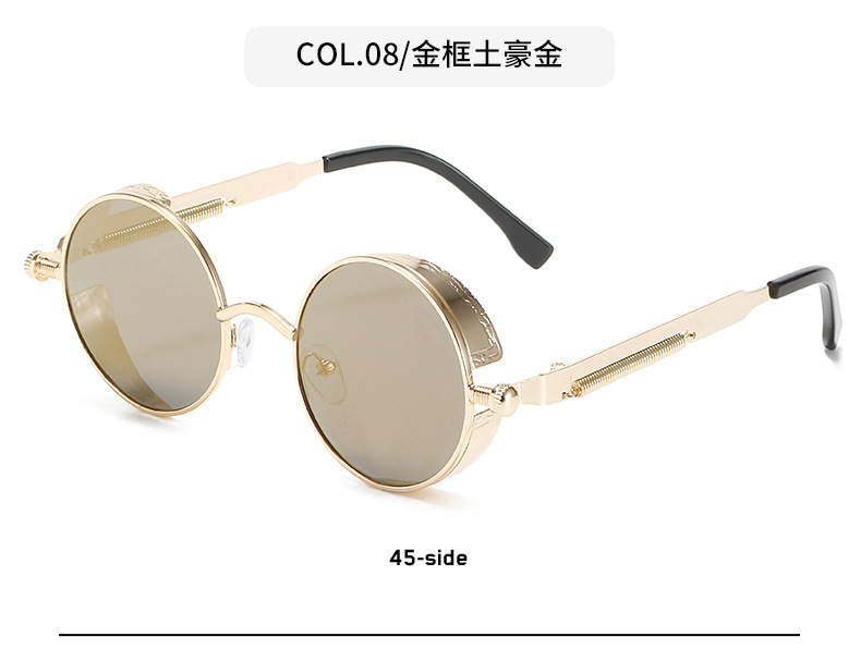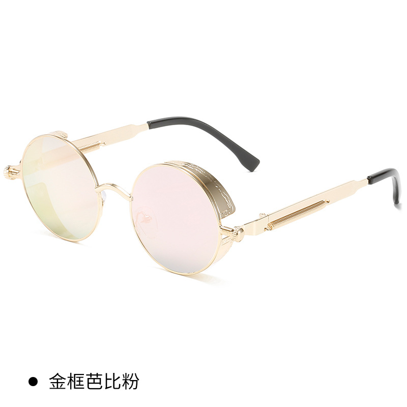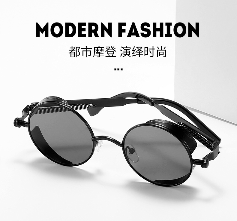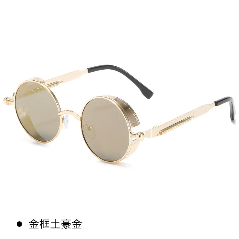 국경을 넘는 인기 스팀펑크 메탈 선글라스, 복고풍 메탈 프레임 선글라스, 둥근 두꺼운 프레임, 스프링 안경다리