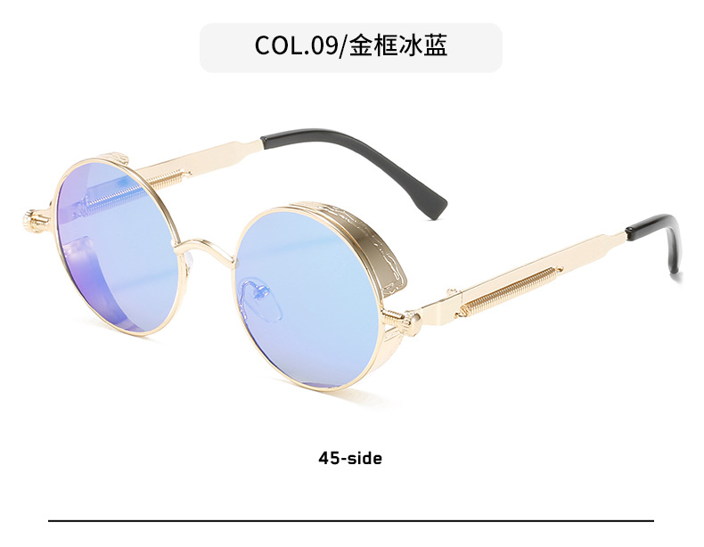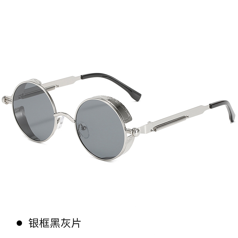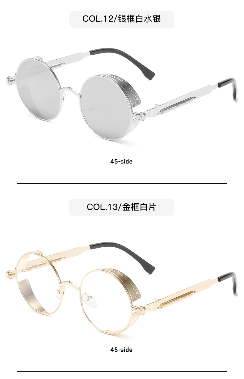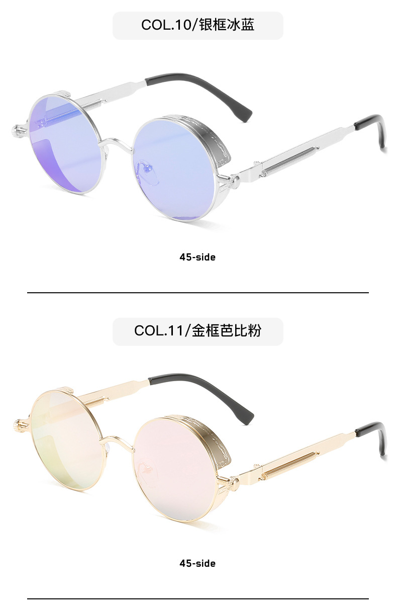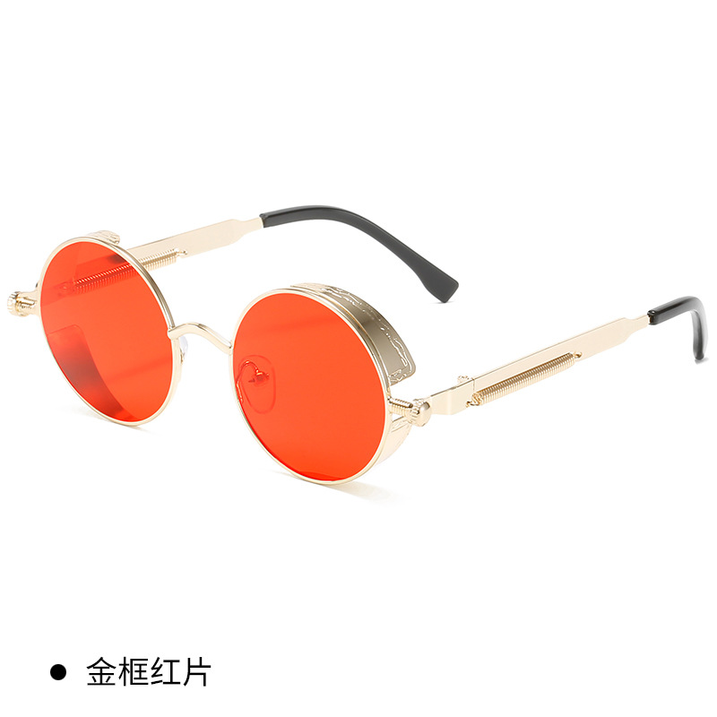 국경을 넘는 인기 스팀펑크 메탈 선글라스, 복고풍 메탈 프레임 선글라스, 둥근 두꺼운 프레임, 스프링 안경다리