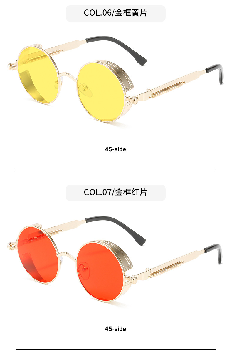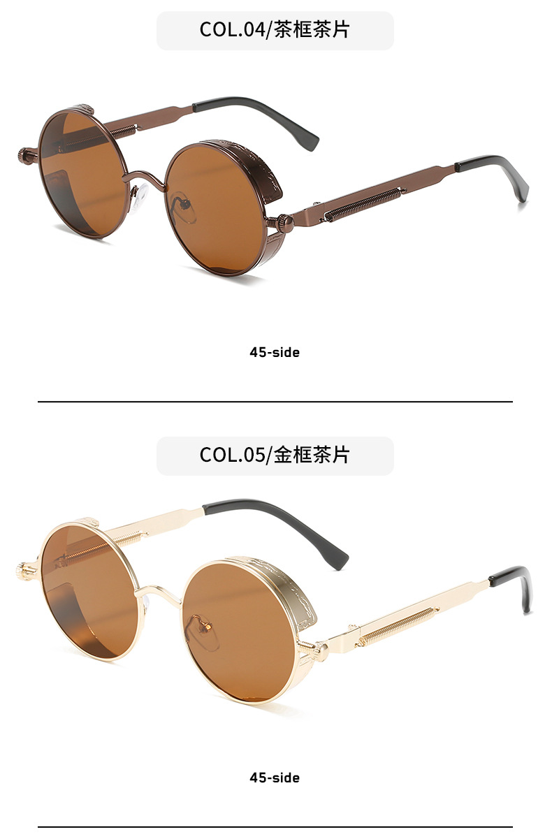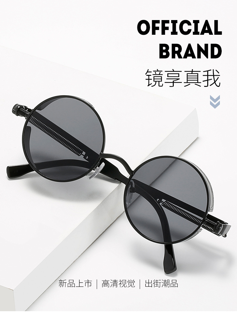 국경을 넘는 인기 스팀펑크 메탈 선글라스, 복고풍 메탈 프레임 선글라스, 둥근 두꺼운 프레임, 스프링 안경다리스토어 가기