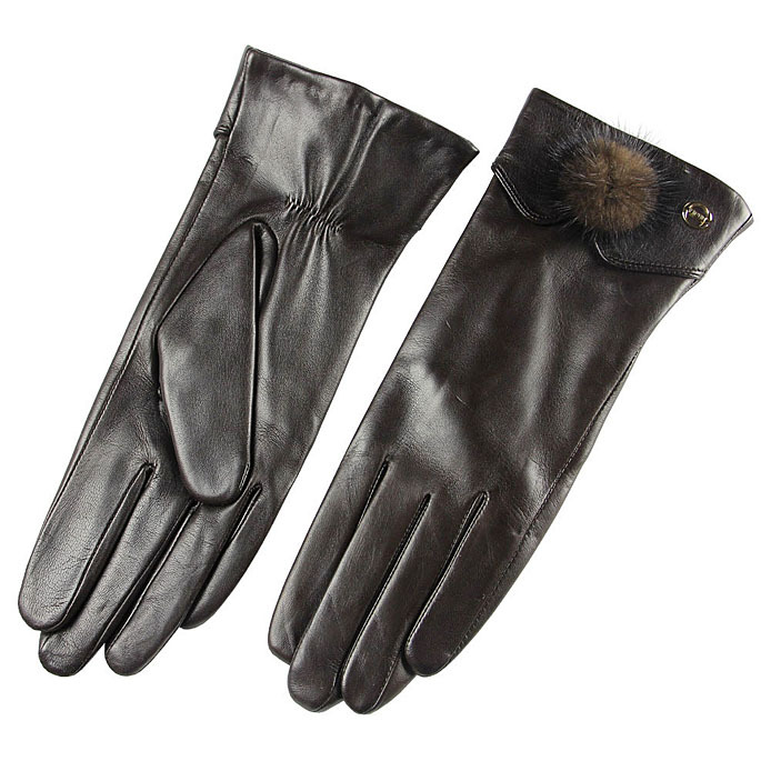 ELMA 여성 양피 패션 정품 가죽 장갑 밍크 모피 볼 겨울 가죽 장갑 EL029NC