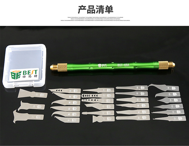 Beisite BST-69A 조각 칼 세트 27 블레이드 조합 CPU 들어 칼 휴대 전화 수리 접착제 제거 도구스토어 가기