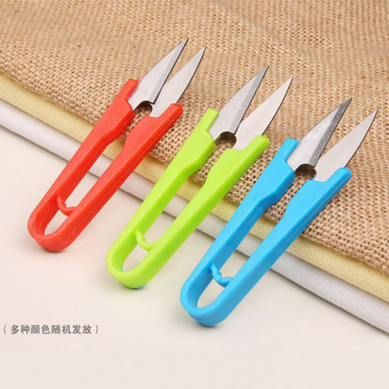스테인레스 스틸 원사 가위 U 자형 가위 플라스틱 핸들 크로스 스티치 실 트리밍 가위 낚시 줄 작은 가위 철 가위 자수