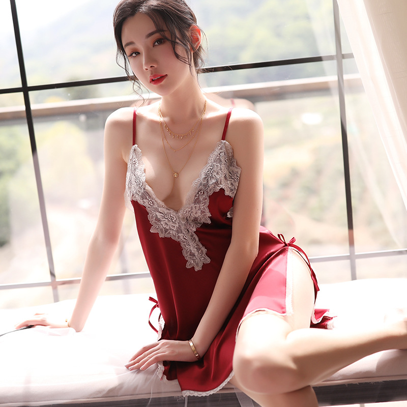 섹시한 잠옷 여자의 섹시한 원피스 슬링 작은 가슴 잠옷 성인 뜨거운 깊은 V 섹시 란제리 레이스 스커트 67 #스토어 가기