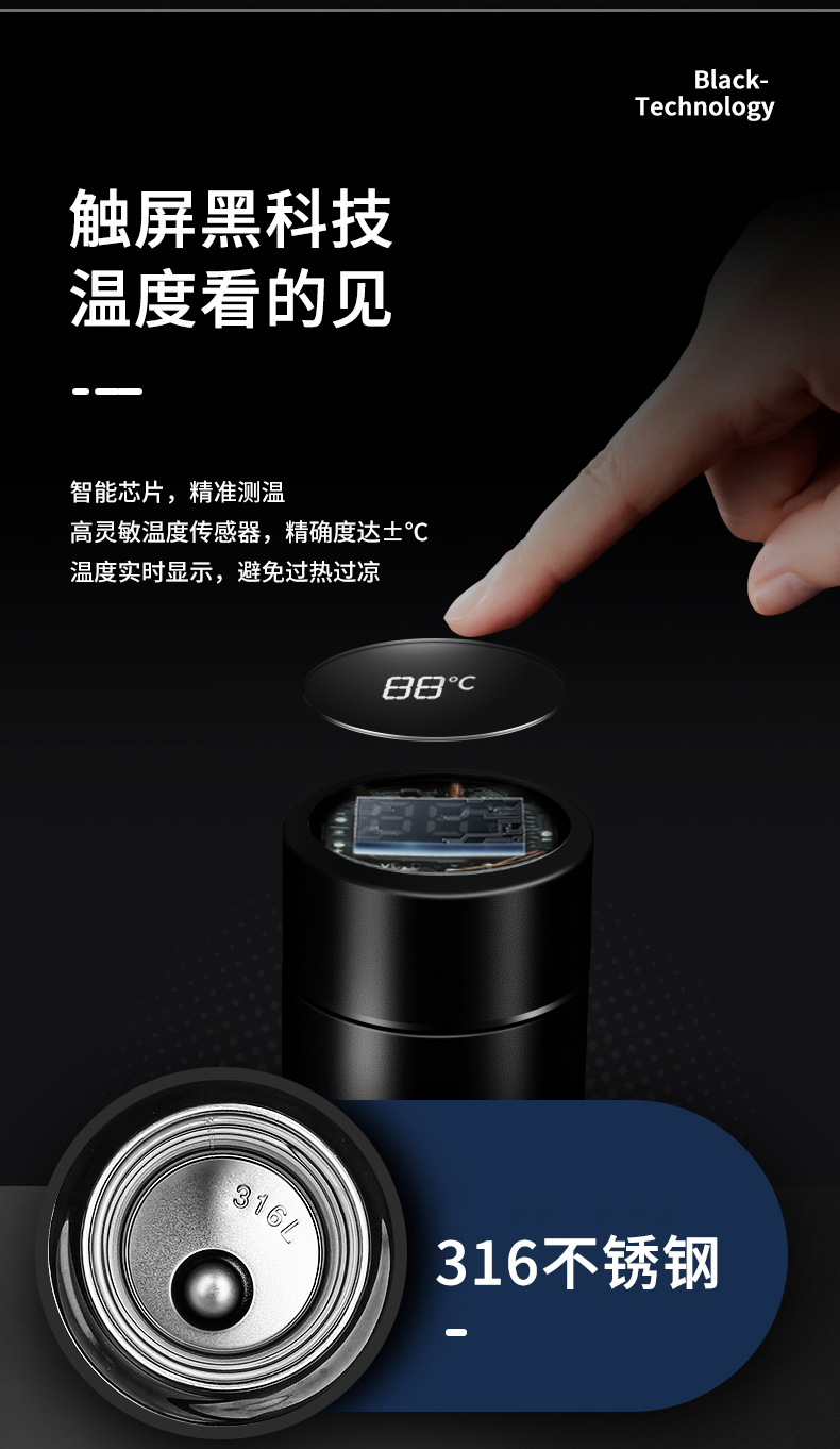 푸광 온도감지 보온병 남성용 316L 스테인리스 비즈니스 차량용 물컵 대용량 휴대용 맞춤형 도매