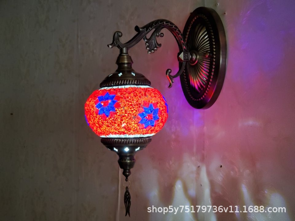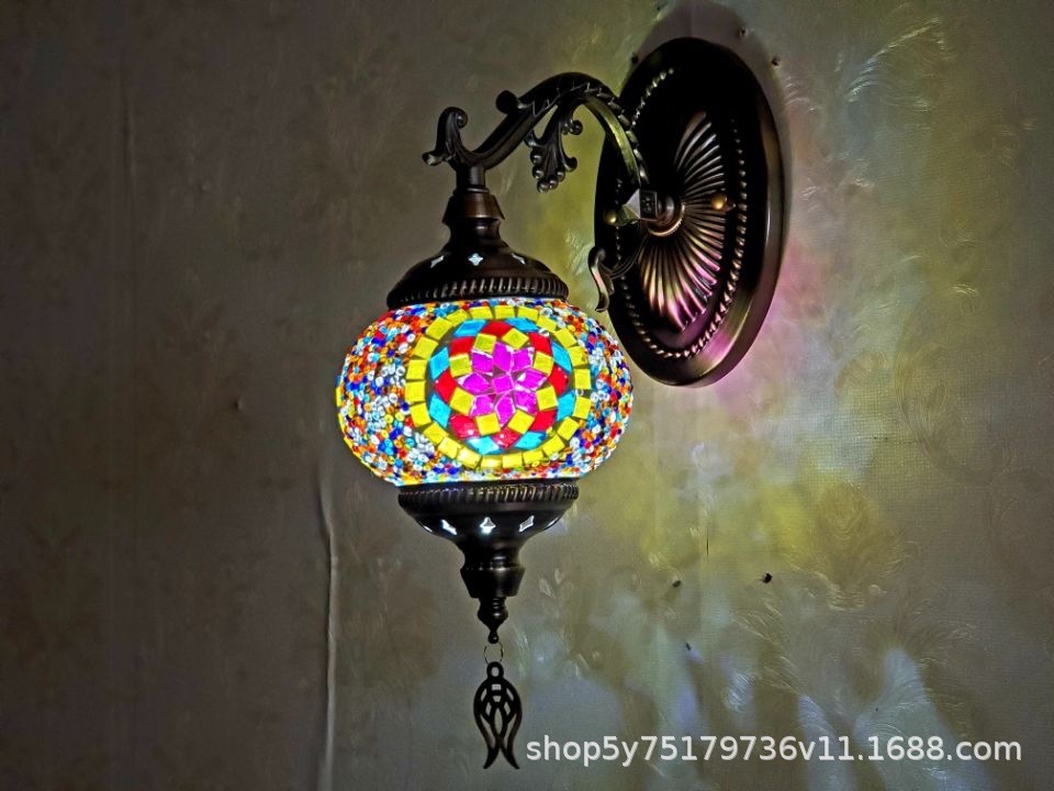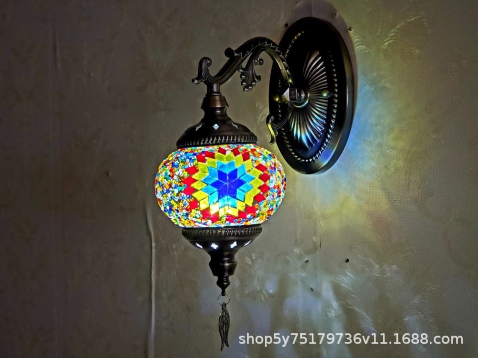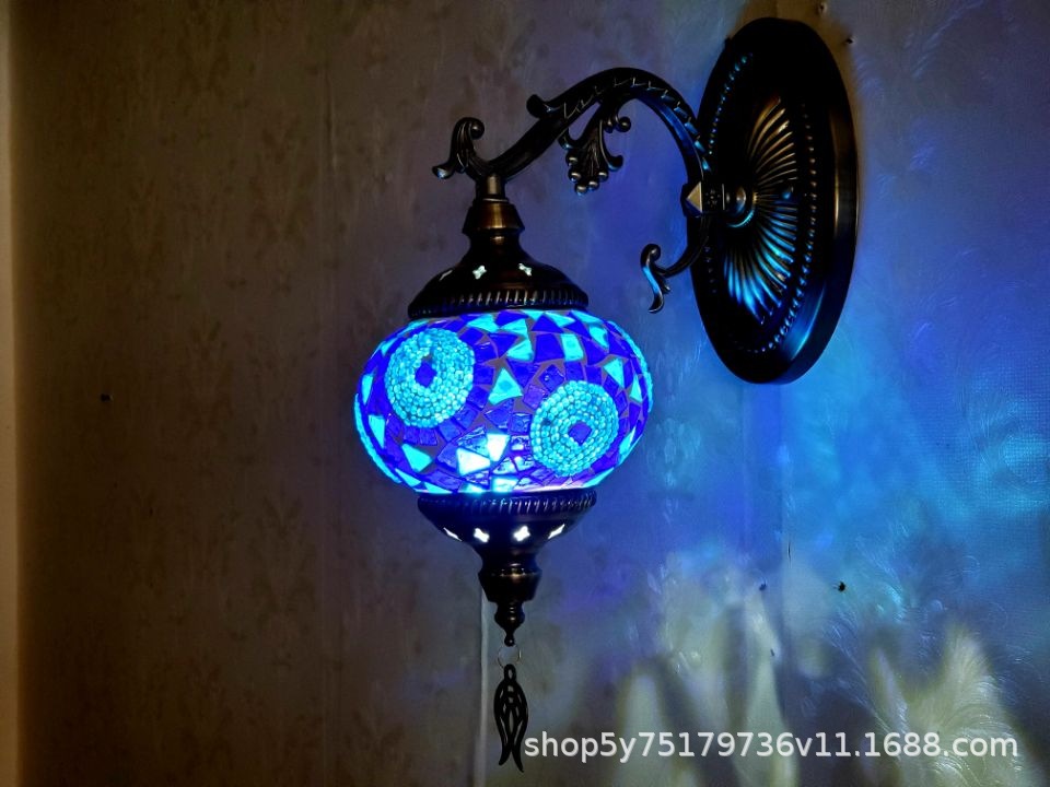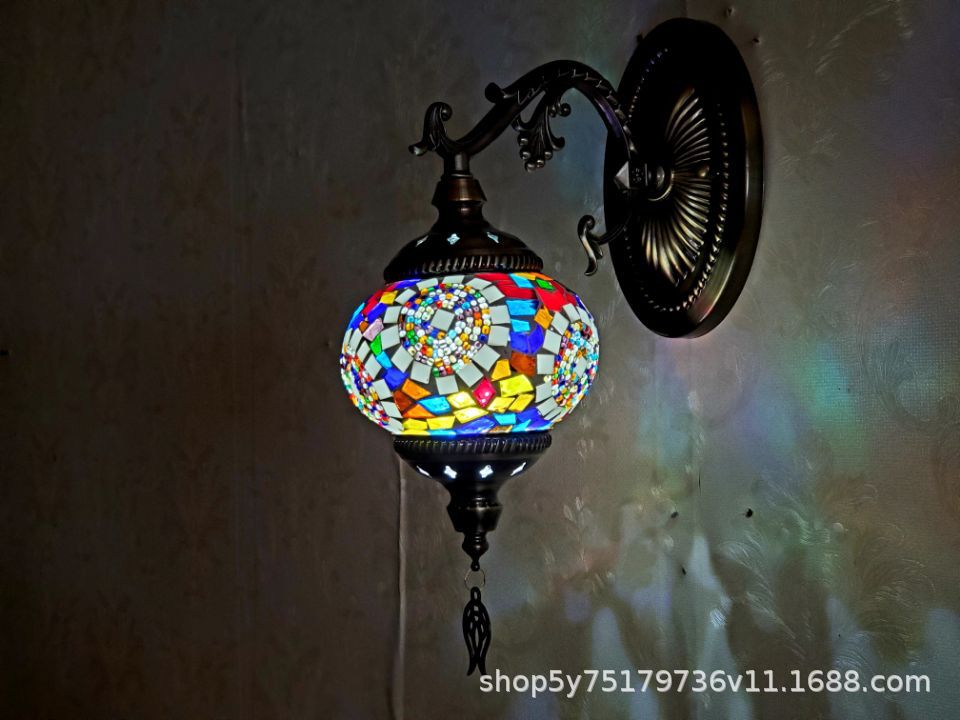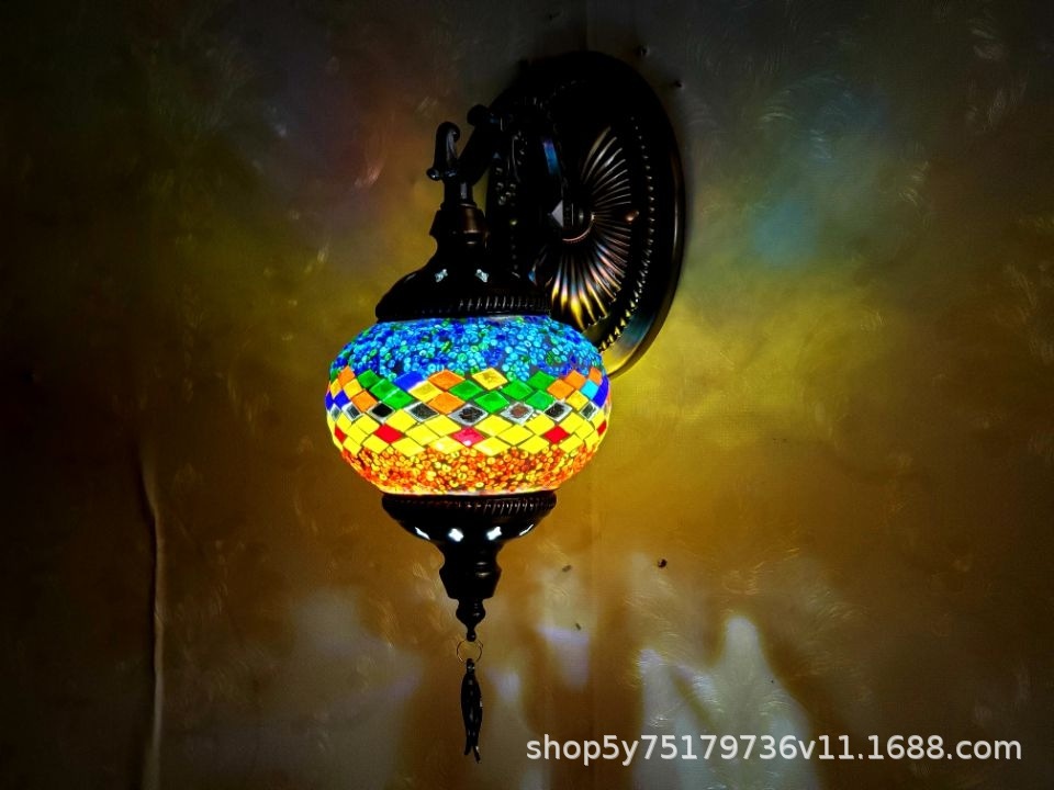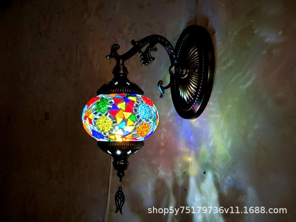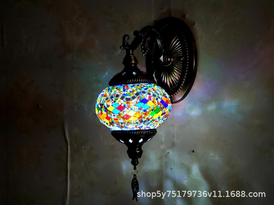 产品介绍:土耳其风格、漫咖啡、民族民宿床头灯装饰、古典、裂纹玻璃复古浪漫壁灯。