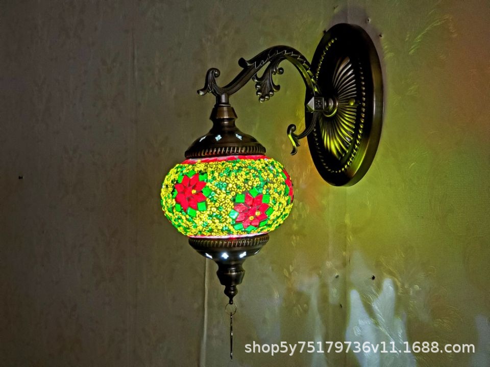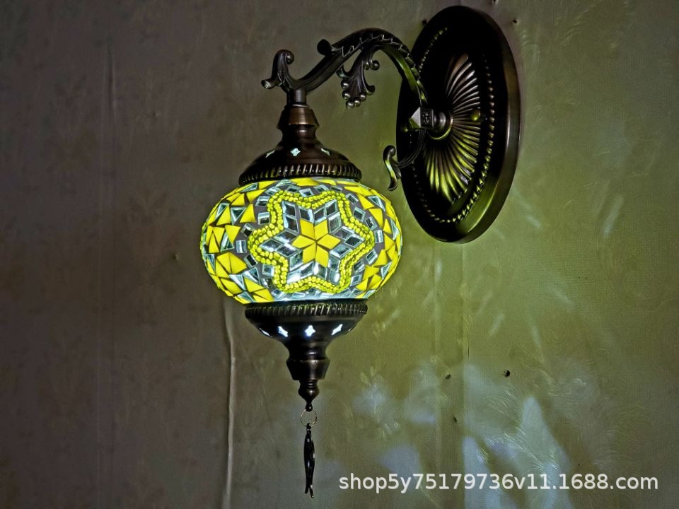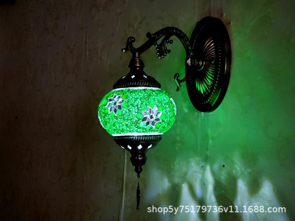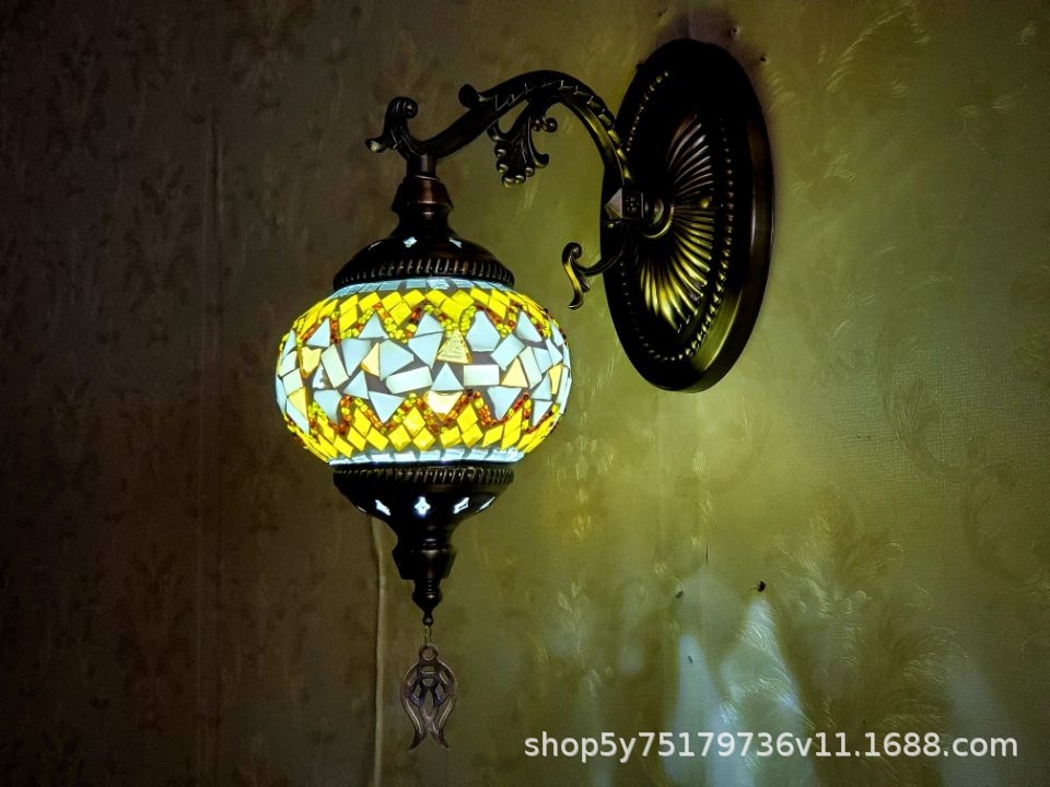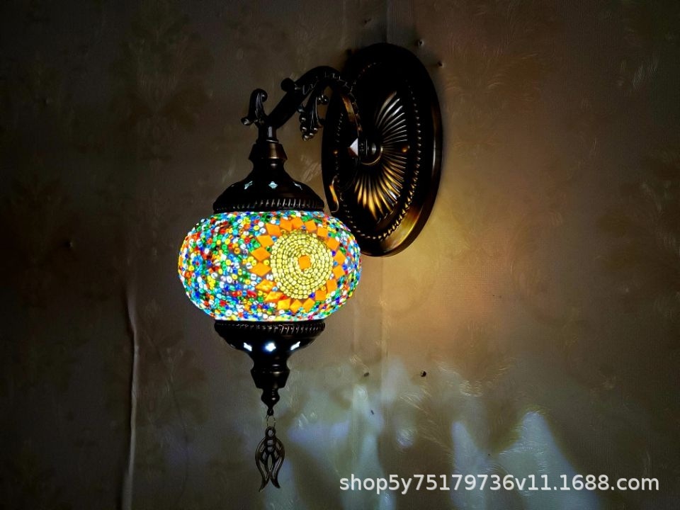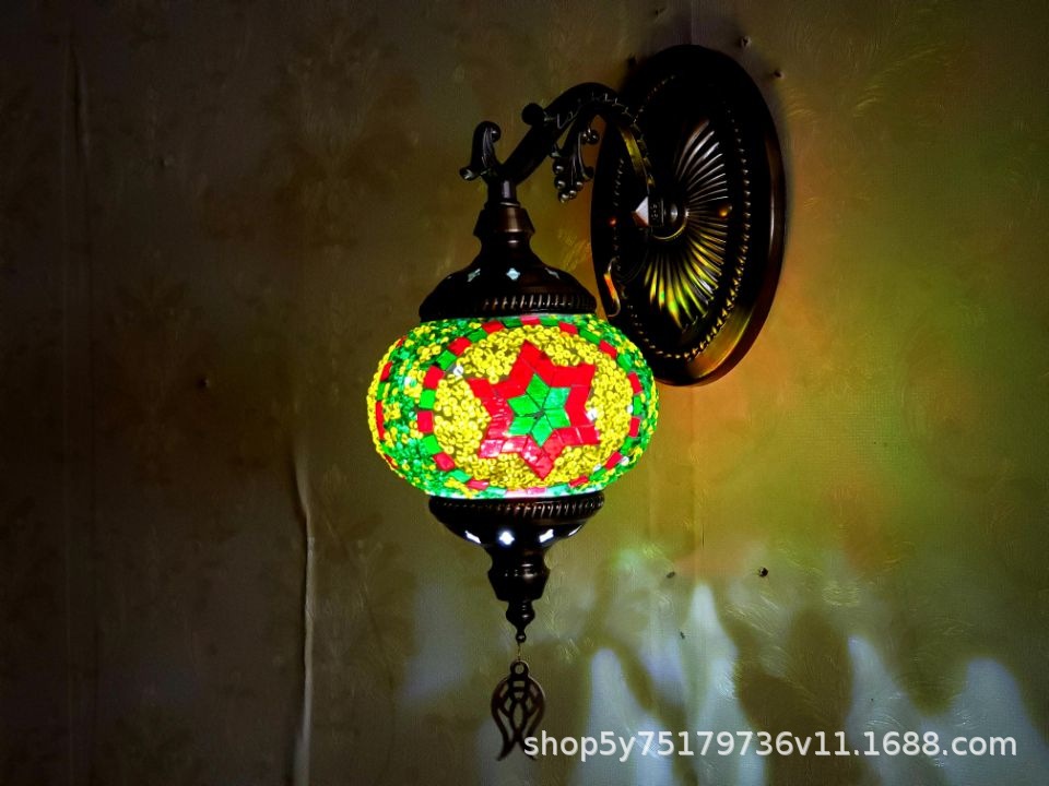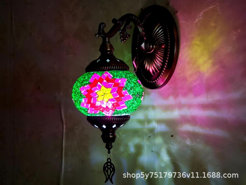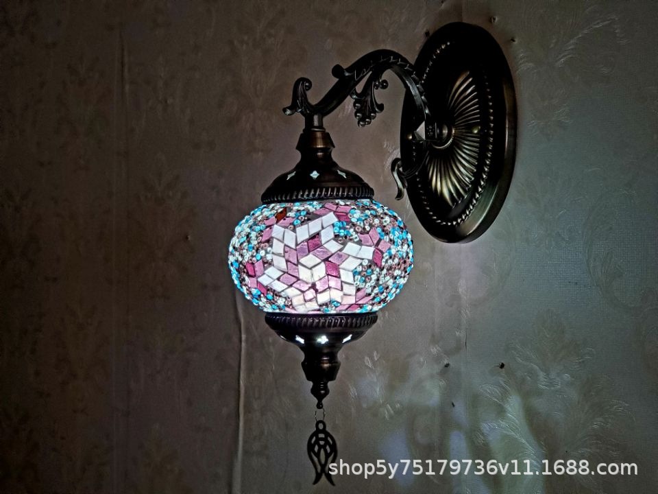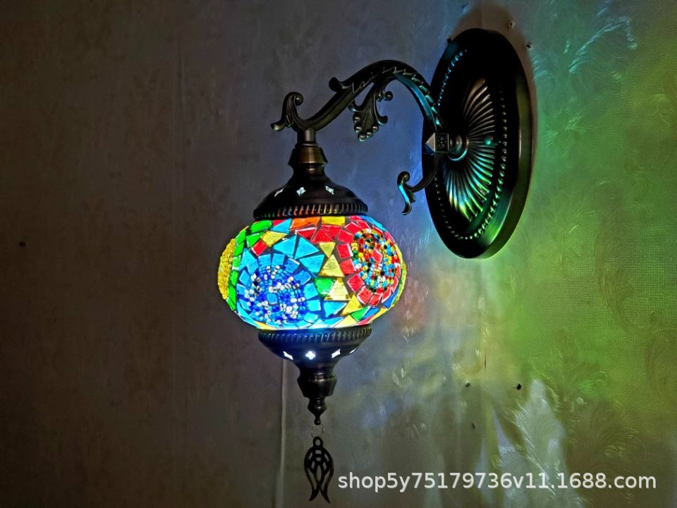 产品介绍:土耳其风格、漫咖啡、民族民宿床头灯装饰、古典、裂纹玻璃复古浪漫壁灯。