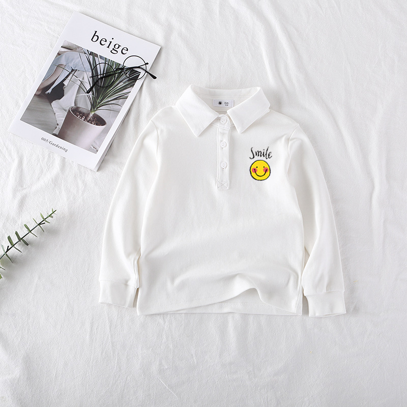 아동복 아동용 긴팔 프린트 셔츠 봄, 가을 2022 새로운 흰색 폴로 셔츠 소년 소녀 대학 옷깃 탑스토어 가기