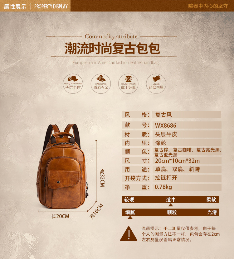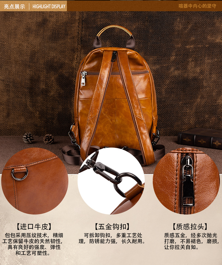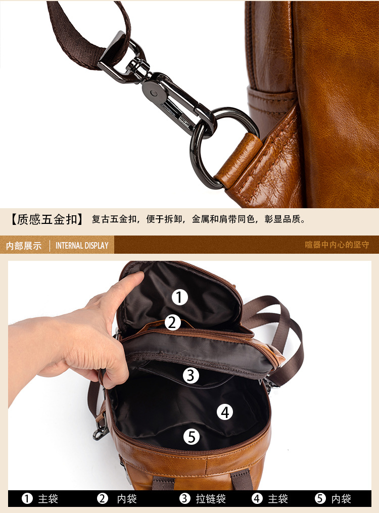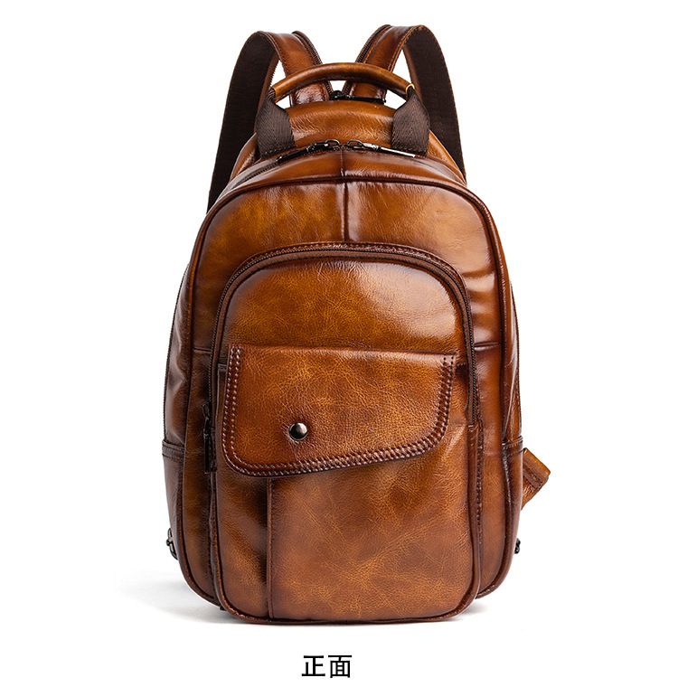 남성용 배낭 탑 레이어 카우보이 배낭 남성 여행 다기능 멀티 레이어 대용량 하이 엔드 소프트 가죽 가슴 가방