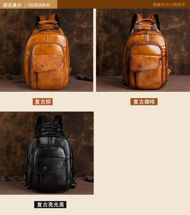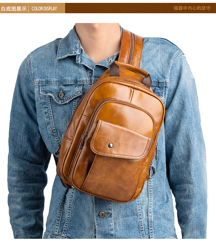 남성용 배낭 탑 레이어 카우보이 배낭 남성 여행 다기능 멀티 레이어 대용량 하이 엔드 소프트 가죽 가슴 가방스토어 가기