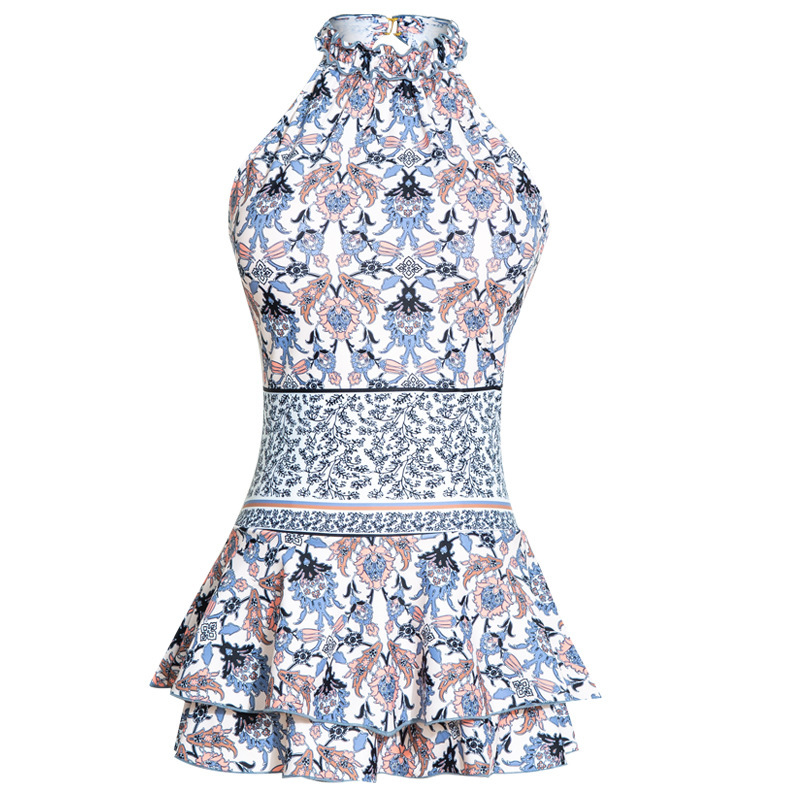 프린트 원피스 수영복 여성용 한국 보수적 인 등이없는 슬리밍 삼각형 섹시한 여성용 수영복 새로운 스커트 잠수복