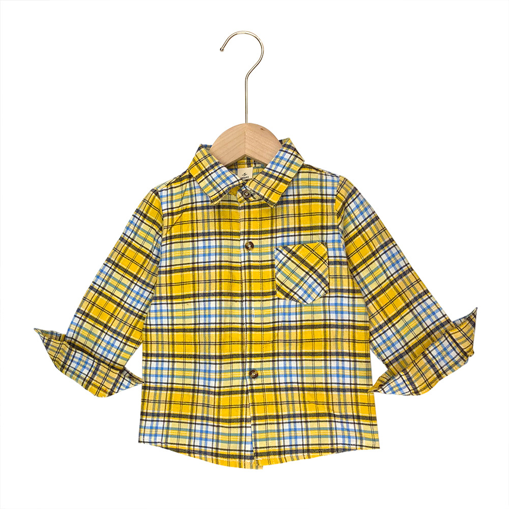 크로스보더 신상 봄 가을 아동용 남아 긴팔 캐주얼 체크 셔츠, 라펠 칼라, 다용도 패셔너블 캐주얼 순면