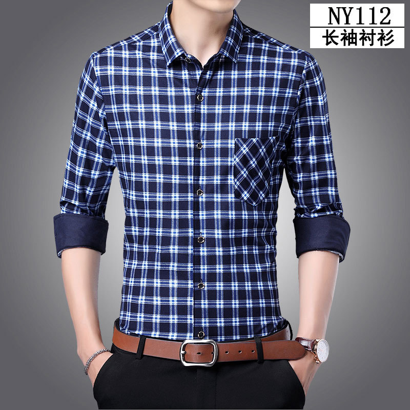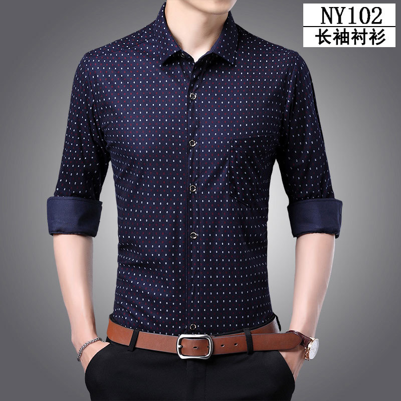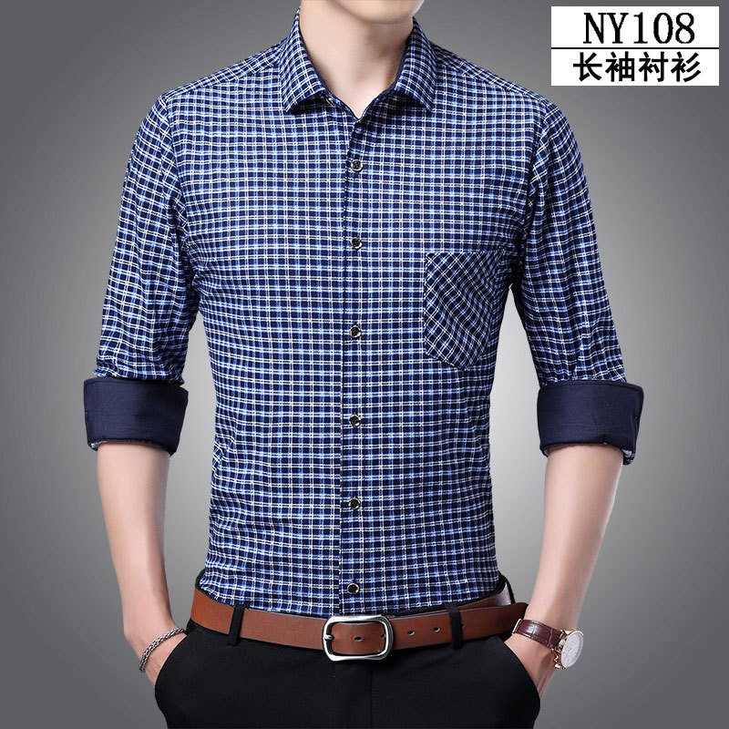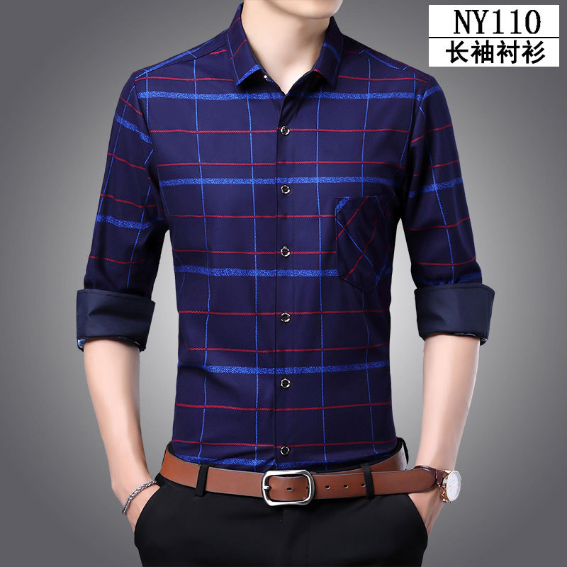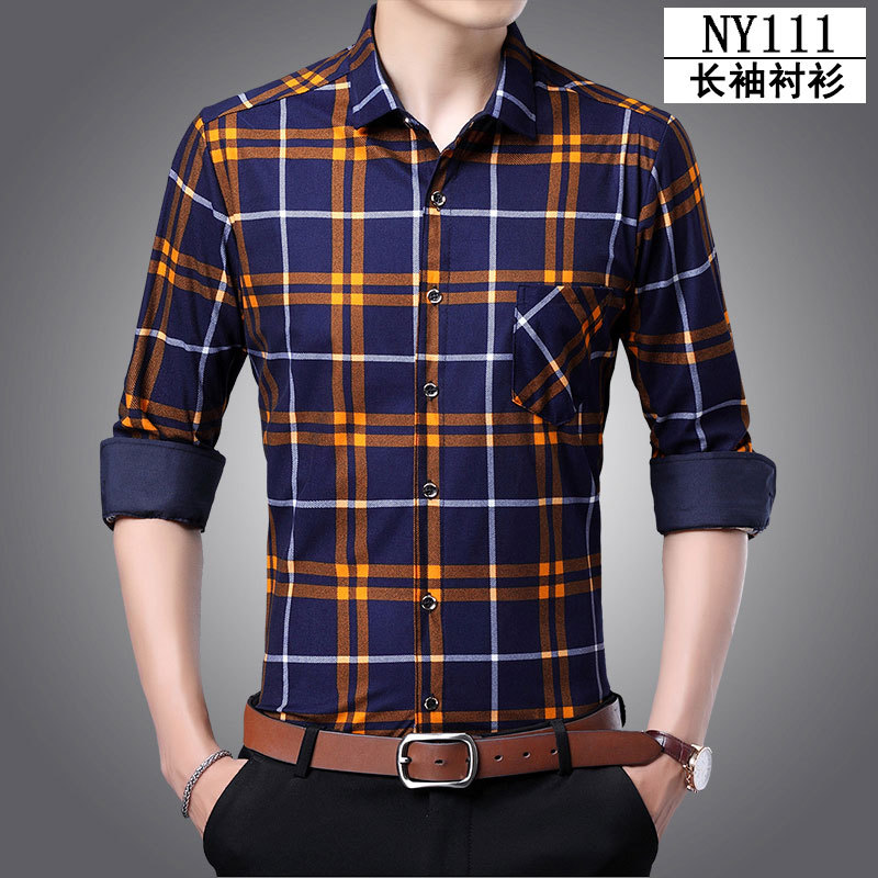 봄과 가을 새로운 남자의 느슨한 긴 소매 셔츠 젊은 중년 격자 무늬 캐주얼 비 다림질 인쇄 얇은 셔츠 남성 도매스토어 가기