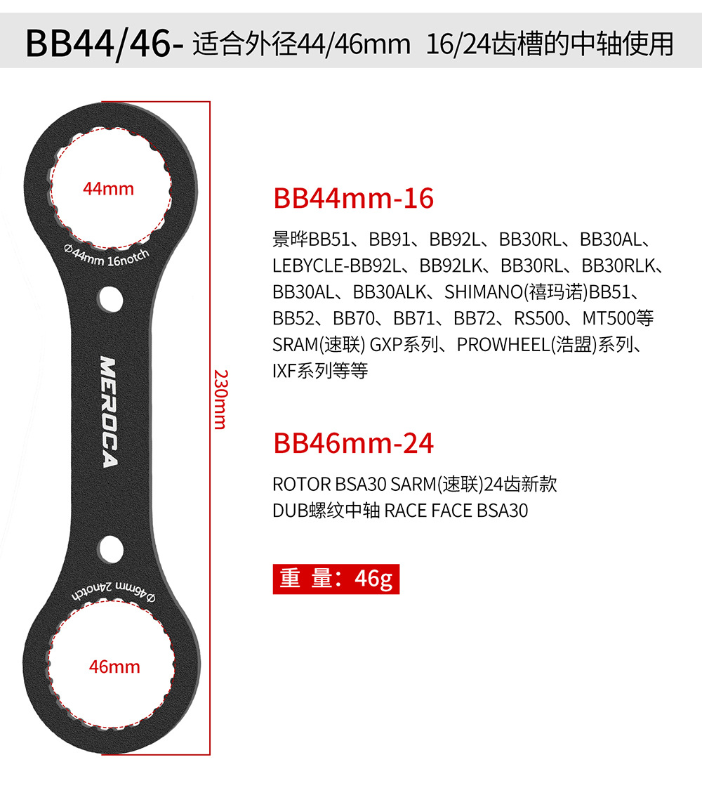 자전거 중공 크랭크셋 분해 도구 센터축 렌치 BB44/46/39/40.5/49/52mm T47스토어 가기