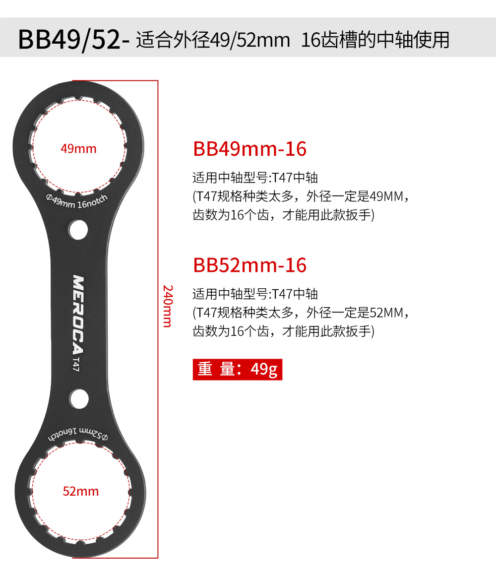 자전거 중공 크랭크셋 분해 도구 센터축 렌치 BB44/46/39/40.5/49/52mm T47