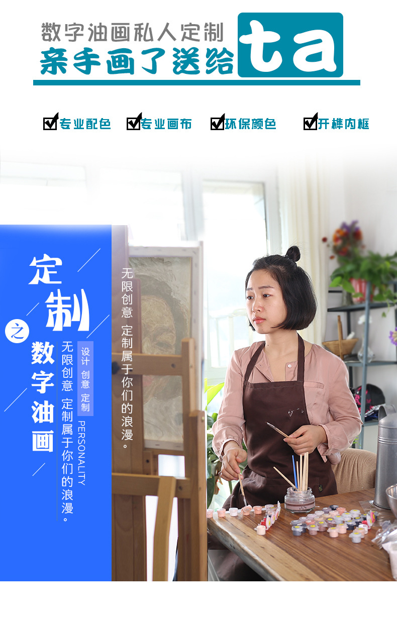 제조업체는 DIY 디지털 유화 DIY 컬러 페인팅 셀카 사진 세트를 판매하고 오일 아크릴 충전 디지털 페인팅을 수행합니다.스토어 가기
