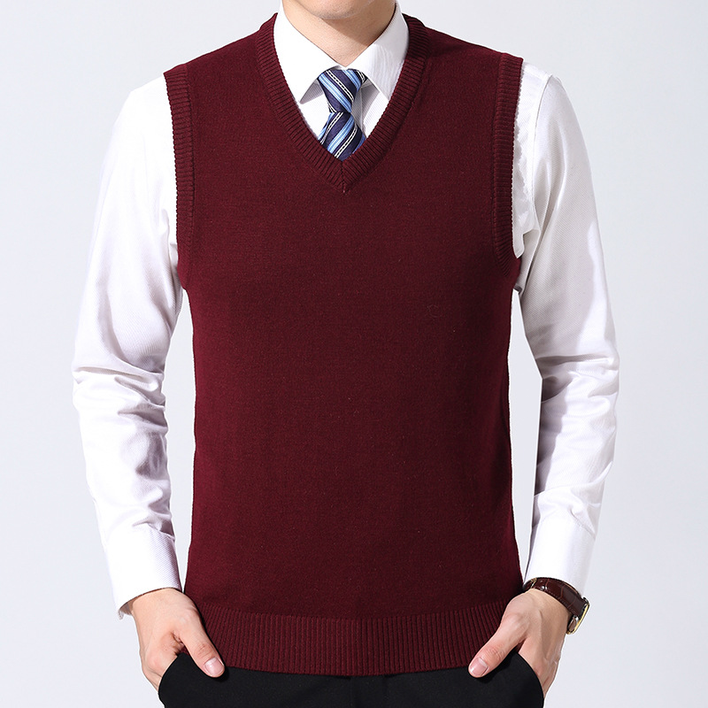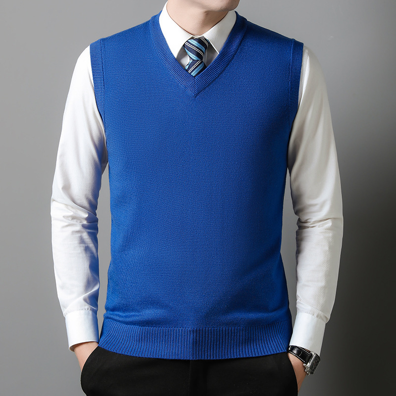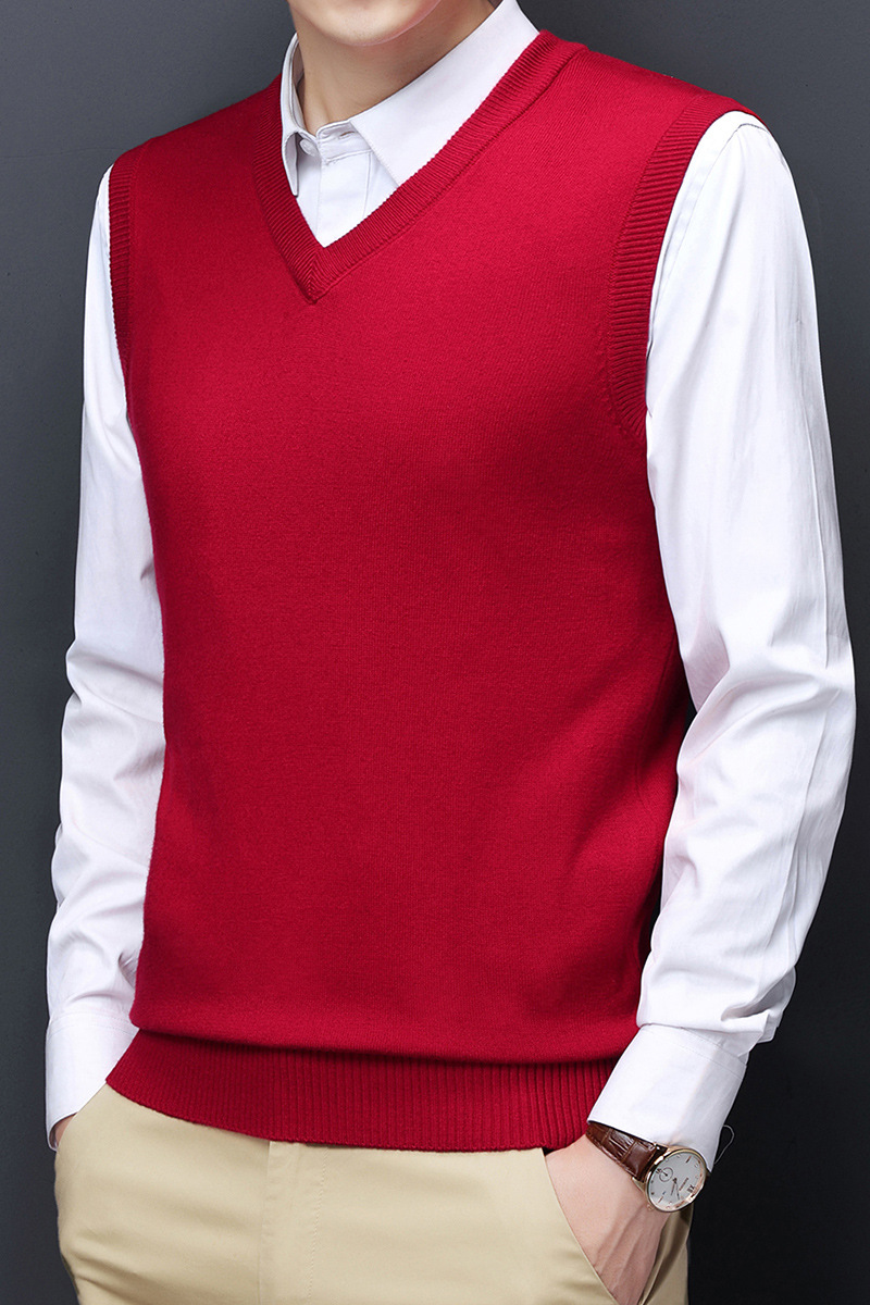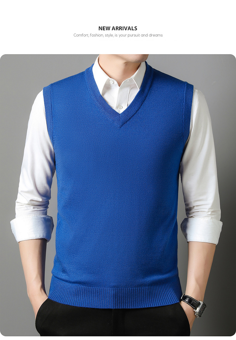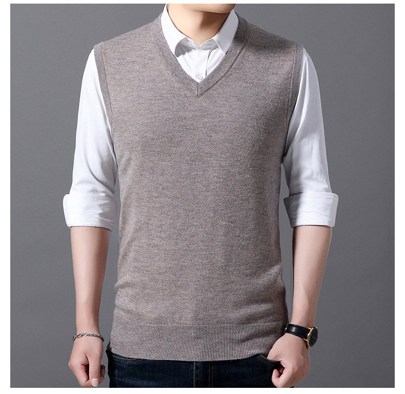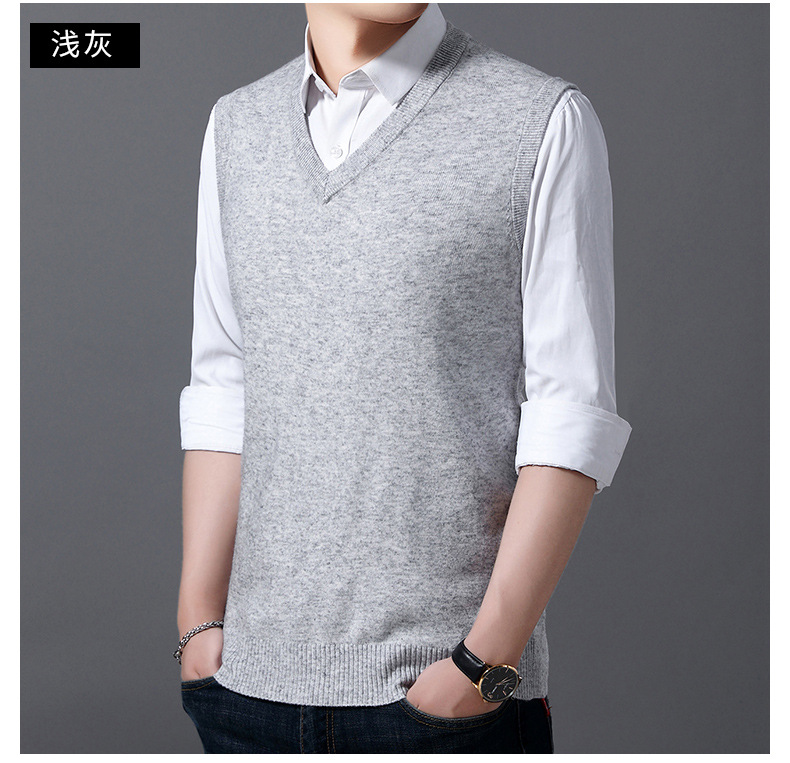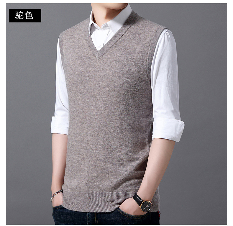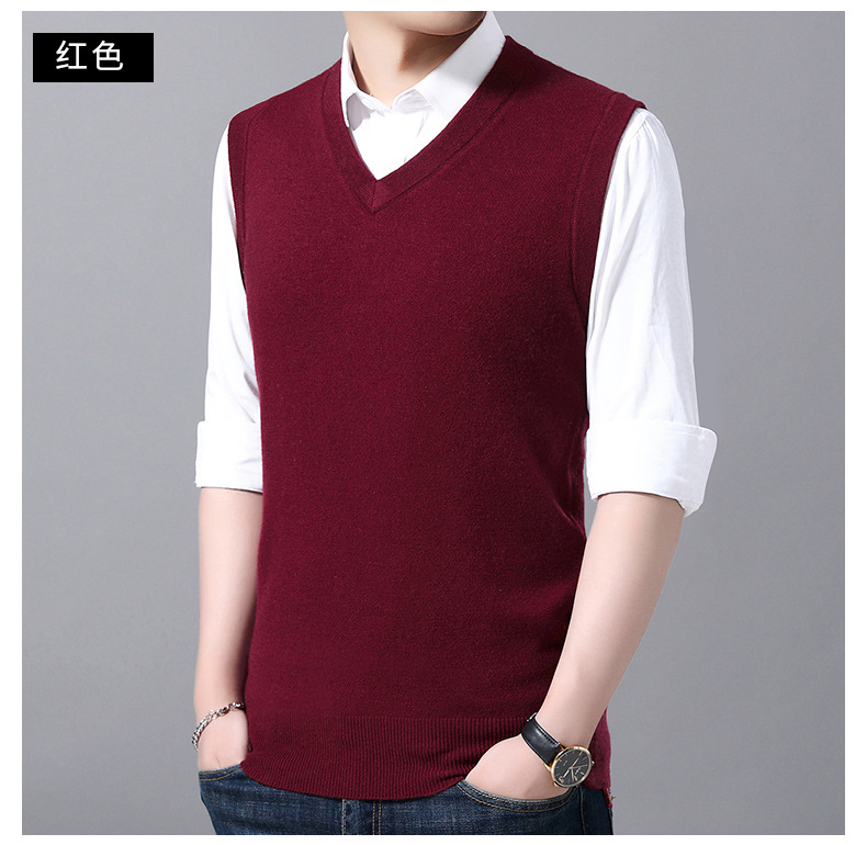 12가지 색상 남성용 6중 울 조끼 니트 풀오버 베이스 셔츠 브이넥 민소매 단색 조끼 해외 무역 인기 상품스토어 가기