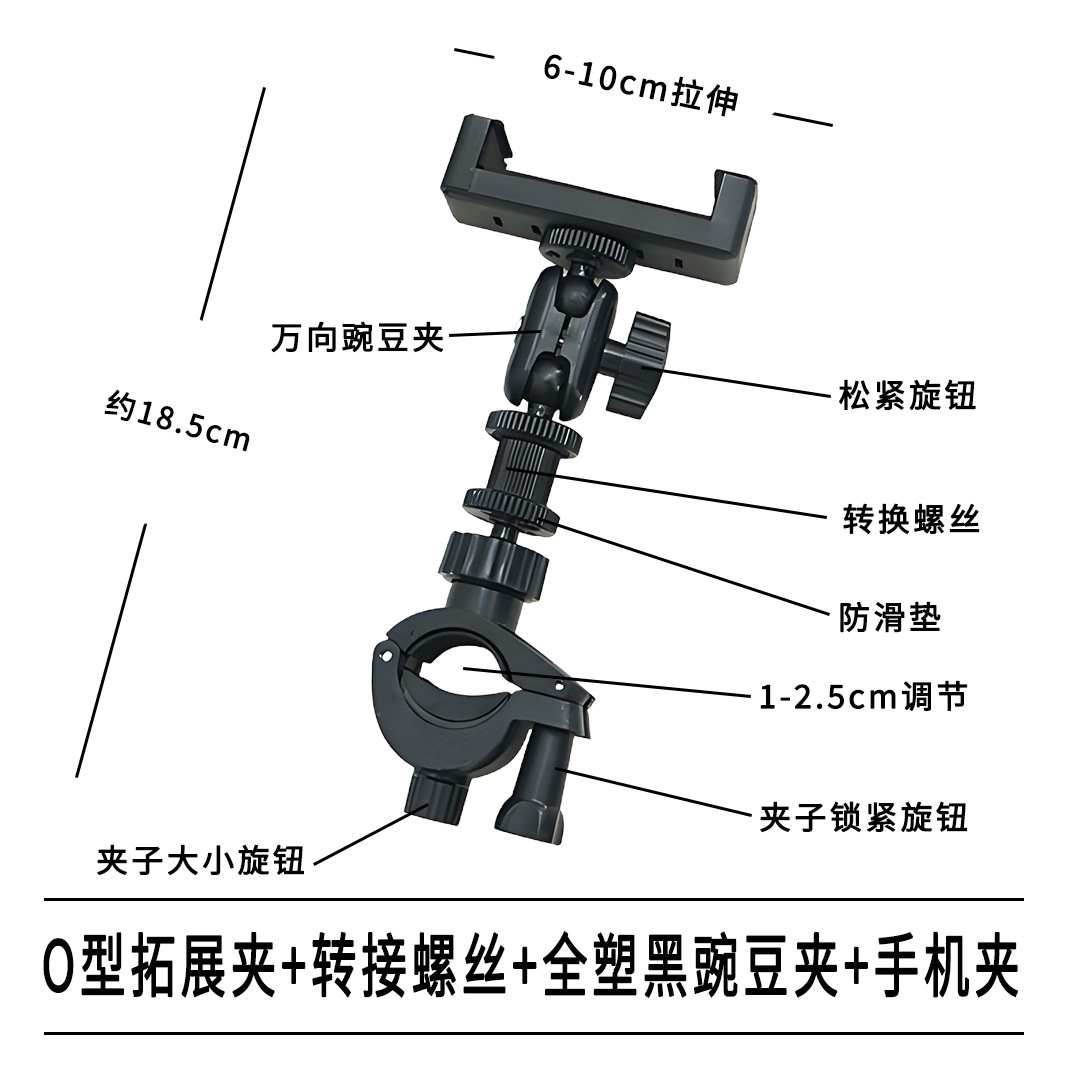 • O자형 확장 클램프 + 어댑터 나사 + 풀 플라스틱 블랙 완두콩 클램프 + 휴대폰 클램프