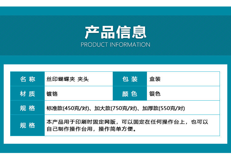 실크스크린 나비형 클램프, 실크스크린 인쇄용 메쉬 클램프, 메쉬 클램프 홀더, 크롬 도금, 두꺼운 750g/쌍, 다기능