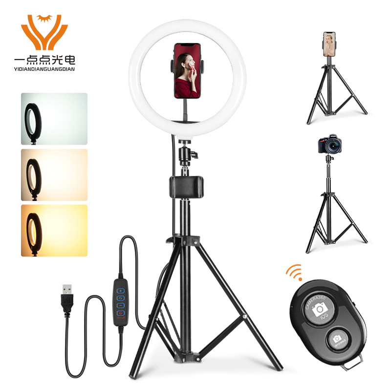 휴대 전화 라이브 라이트 링 라이트 세트 10 인치 아름다움 셀카 라이트 링 라이트 3 발 바닥 스탠드