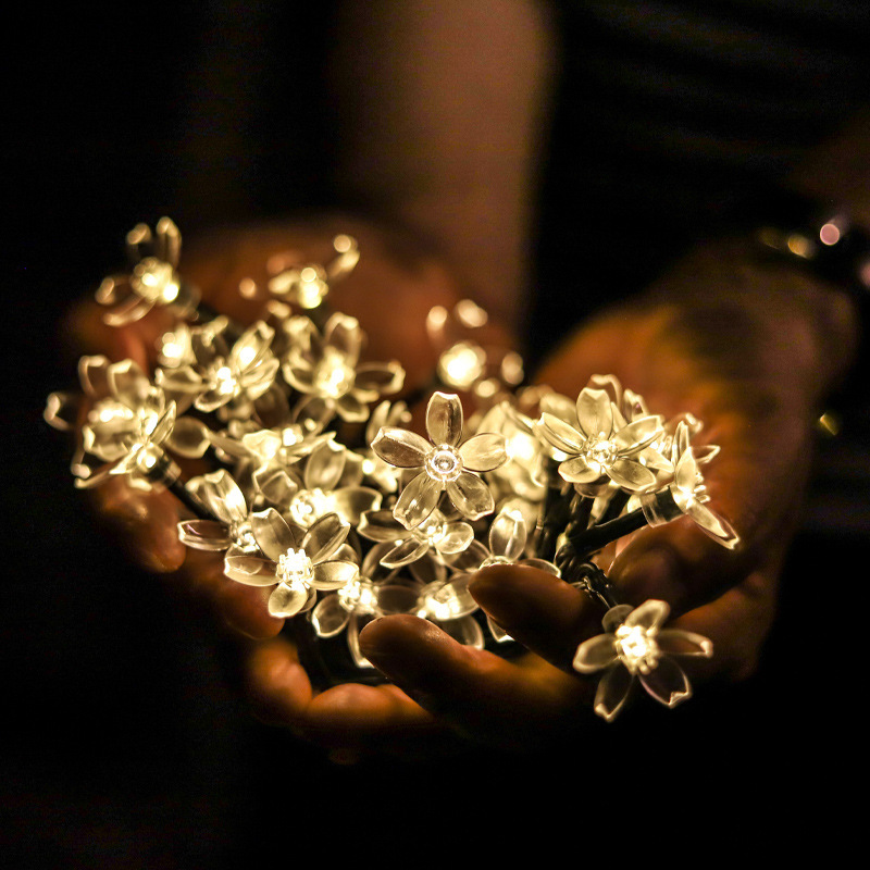 태양광 LED 스트링 조명 야외 원격 제어 방수 정원 장식 조명 버블볼 물방울 복숭아꽃 야외 컬러 조명