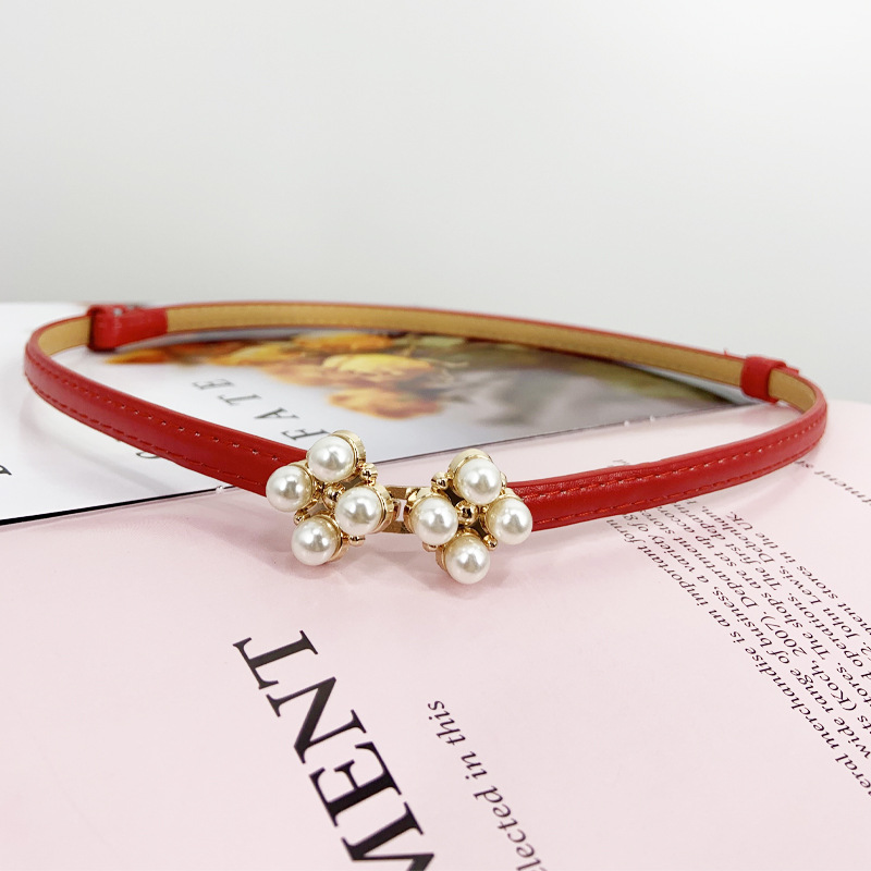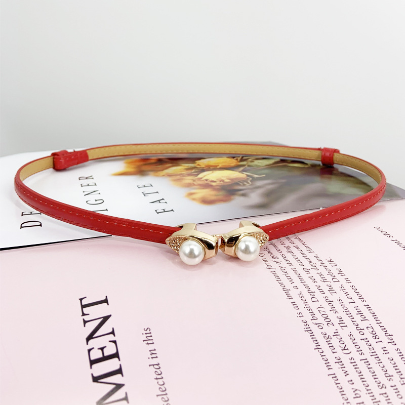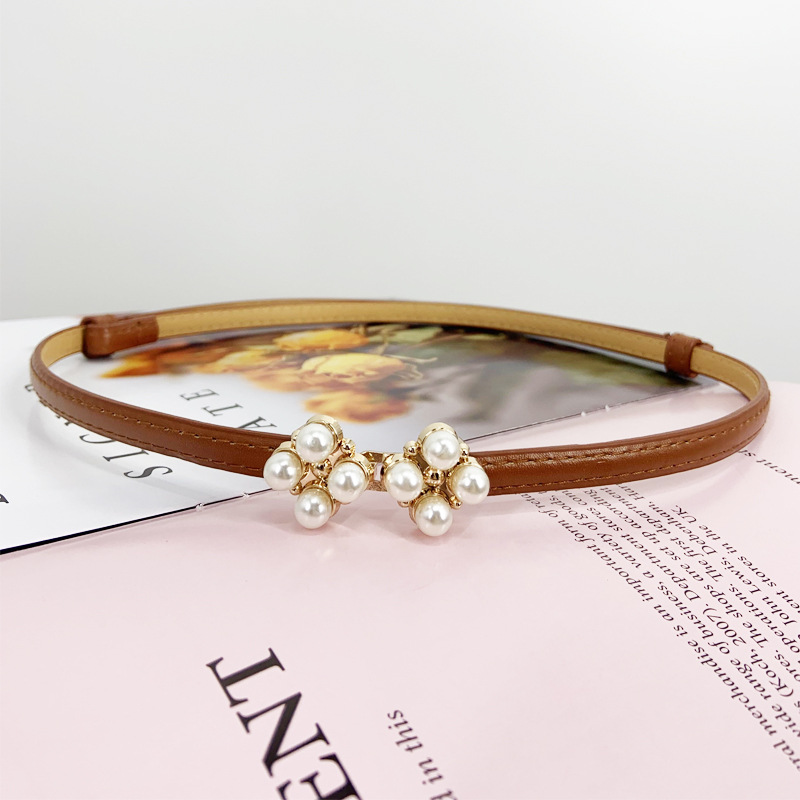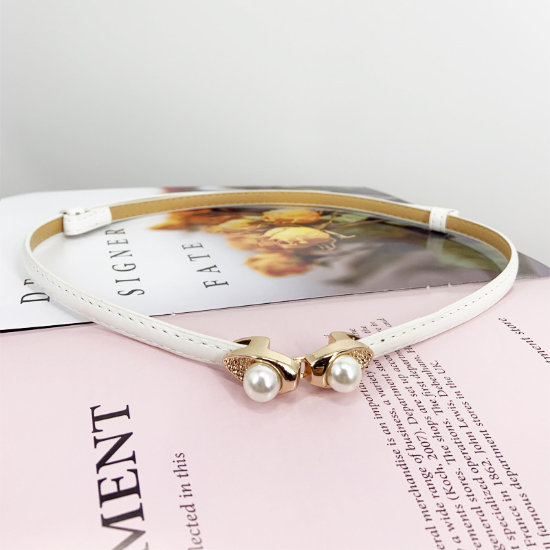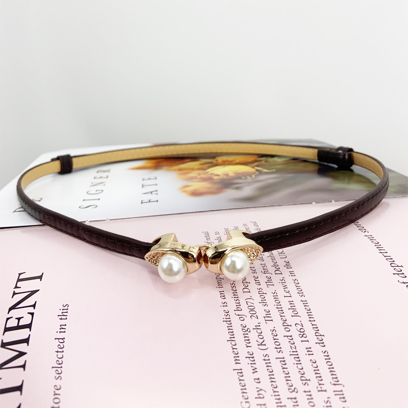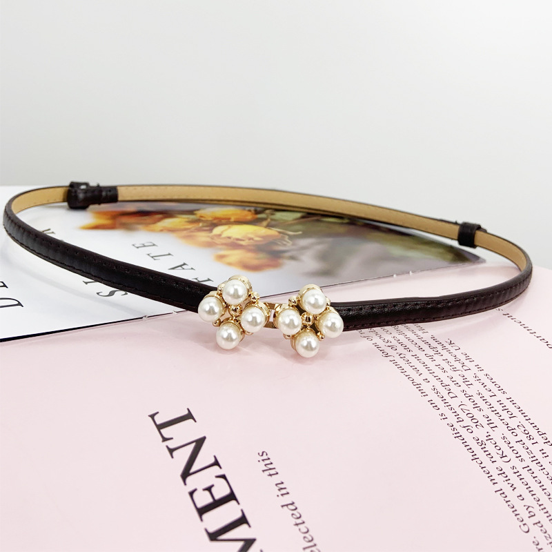 한국 새로운 블랙 코트 벨트 얇은 벨트 여성용 장식 원피스 액세서리 스웨터 스커트 진주 허리 체인스토어 가기
