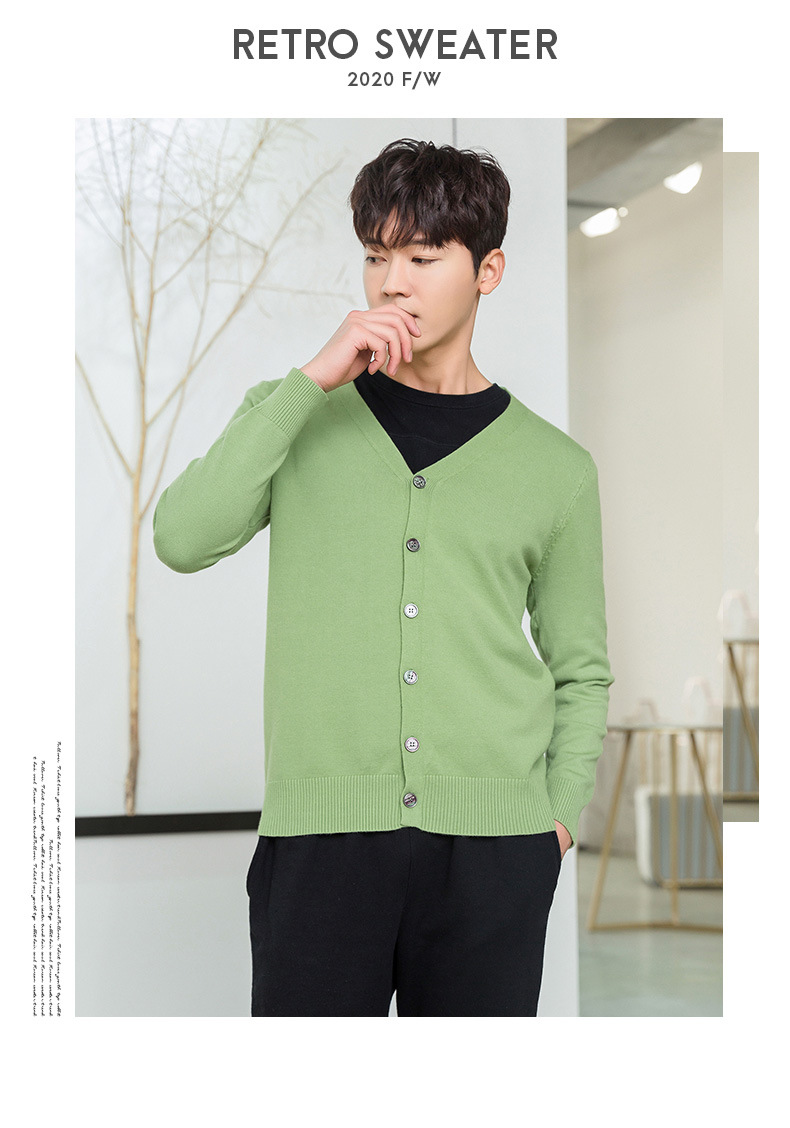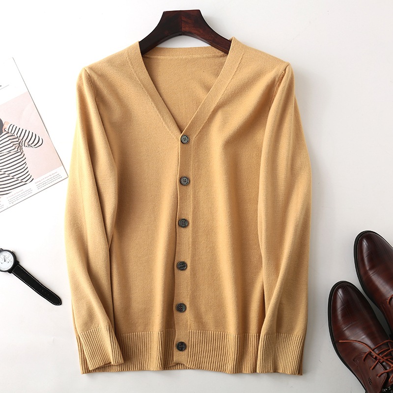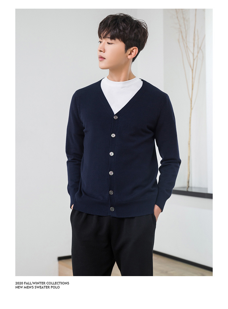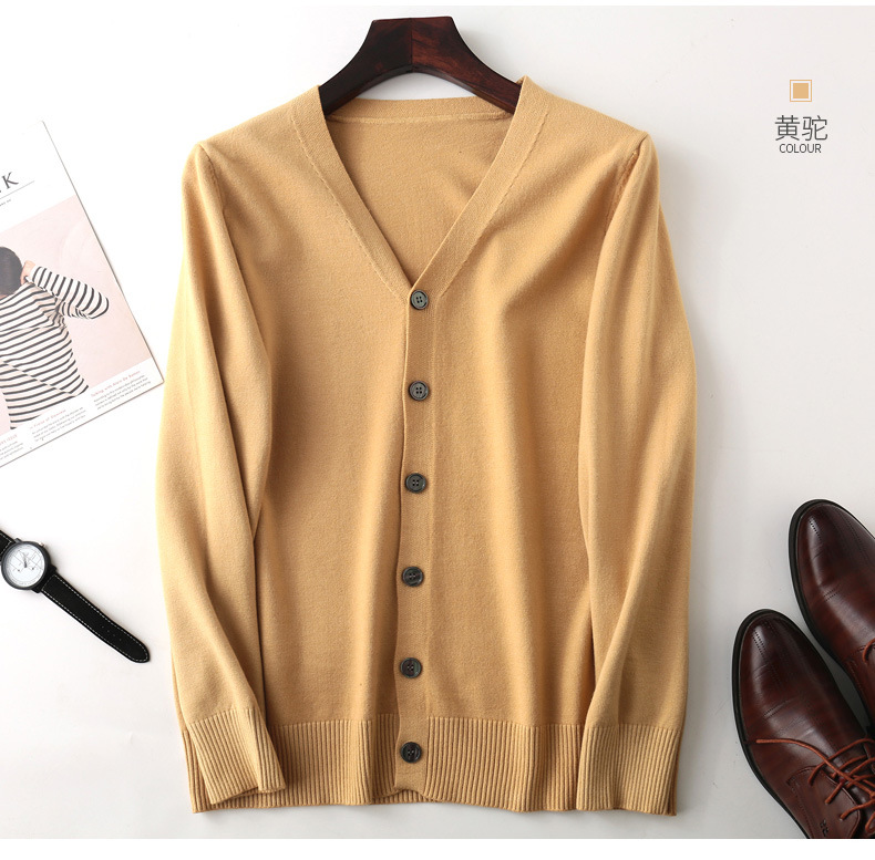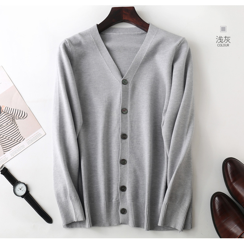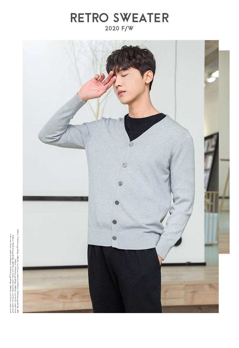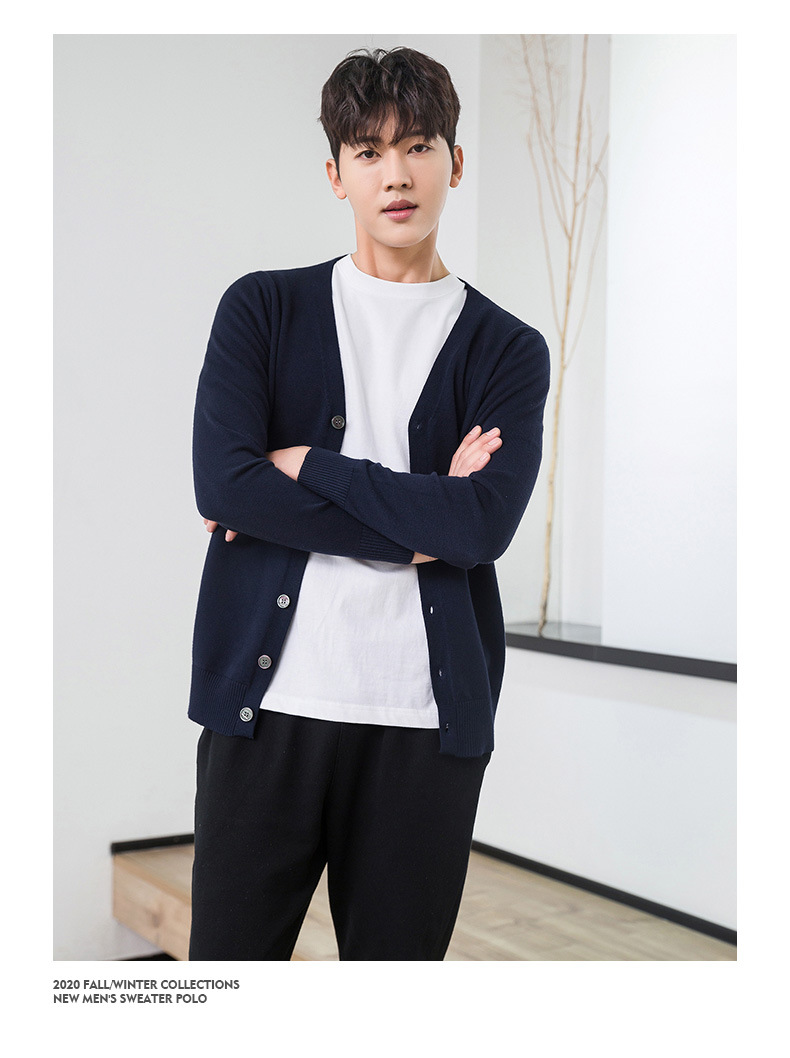 봄과 가을 V 넥 카디건 남성용 양모 스웨터 얇은 느슨한 한국 스타일 캐시미어 스웨터 니트 스웨터 재킷 트렌디 청소년스토어 가기