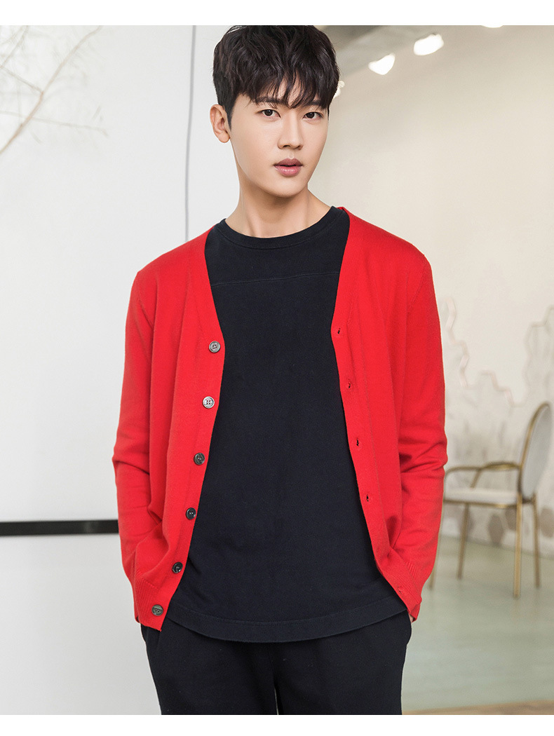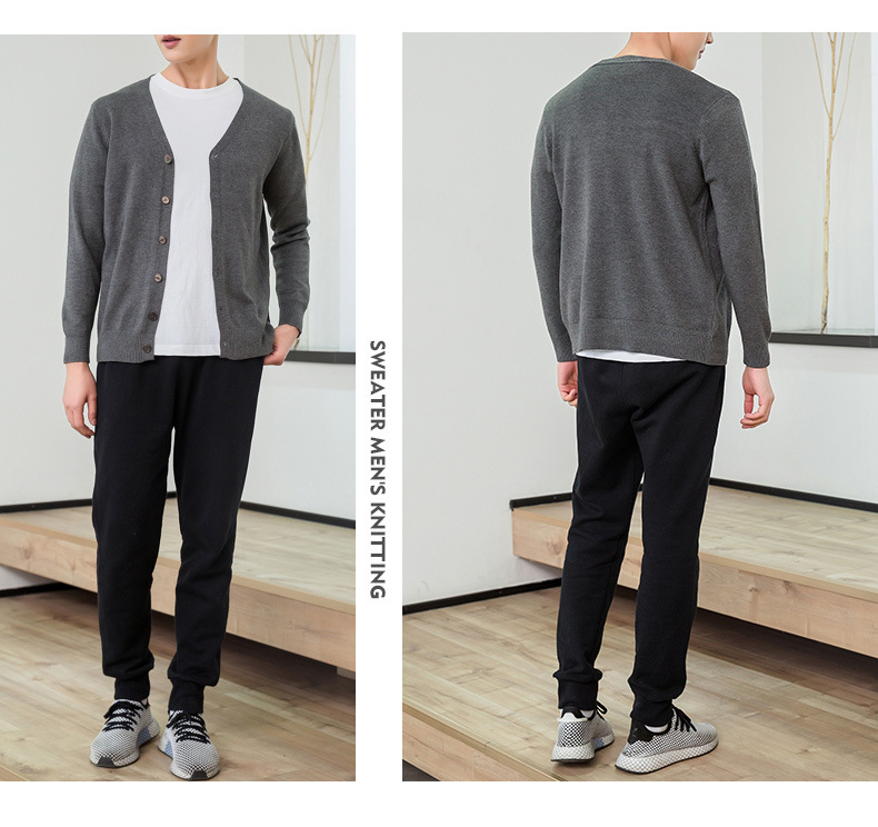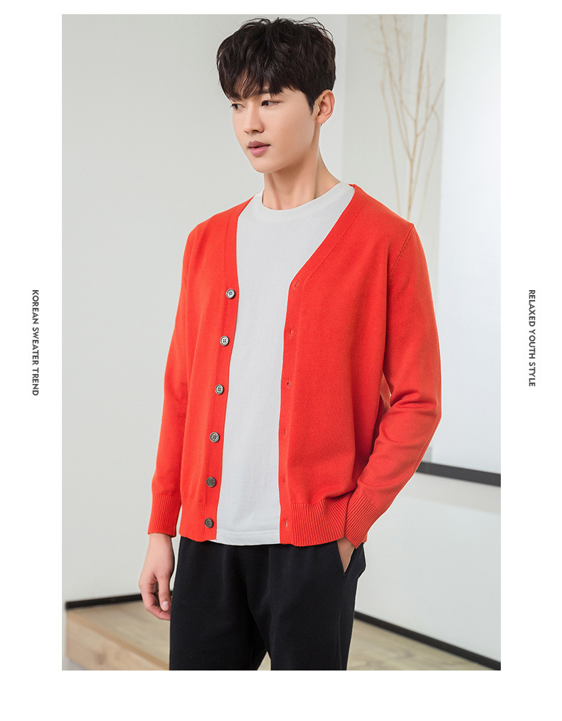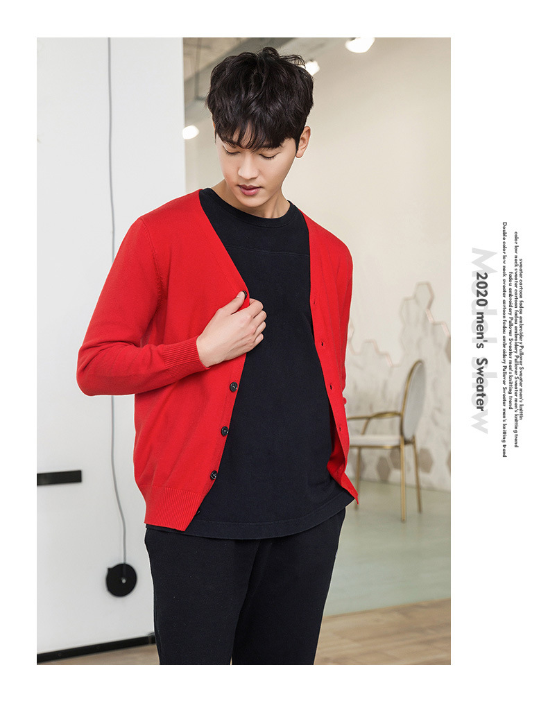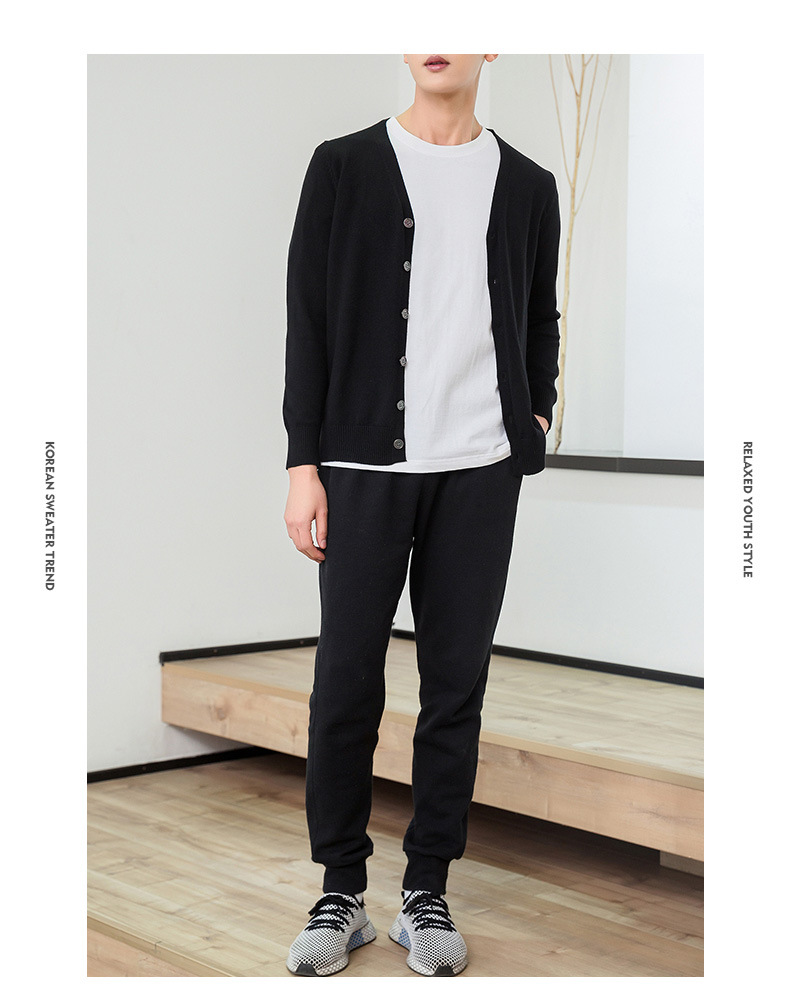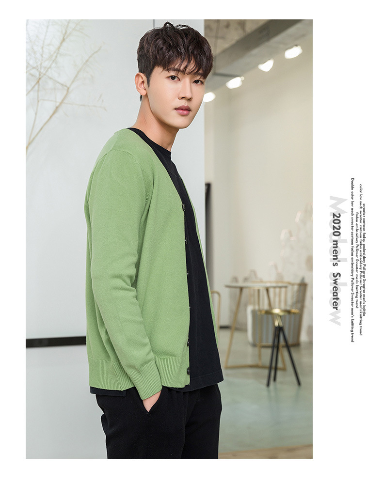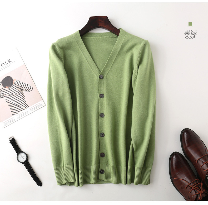 봄과 가을 V 넥 카디건 남성용 양모 스웨터 얇은 느슨한 한국 스타일 캐시미어 스웨터 니트 스웨터 재킷 트렌디 청소년스토어 가기