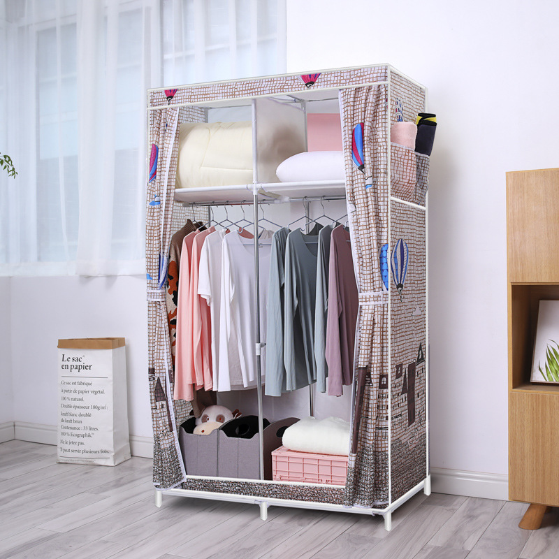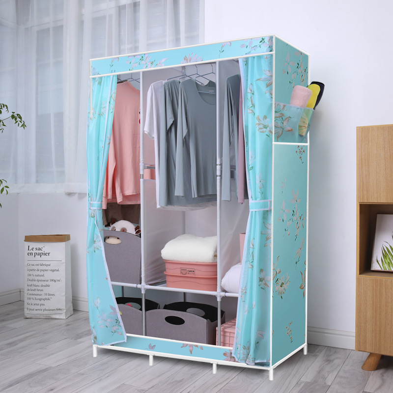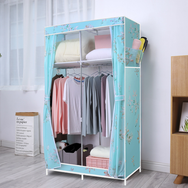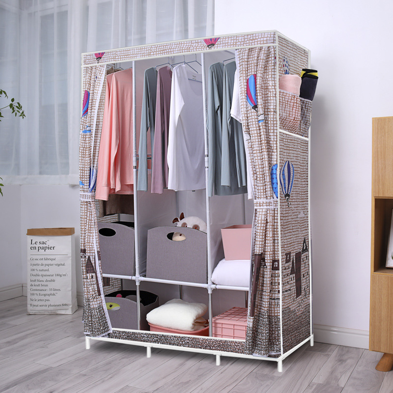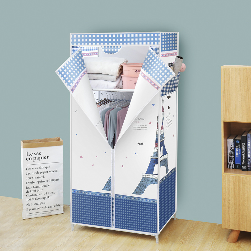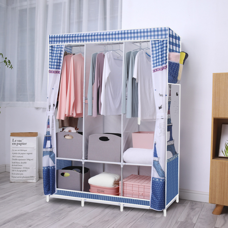 간단한 옷장 옥스포드 천 대담한 강철 프레임 조합 옷장 가정용 옷장 싱글 더블 천 옷장 조립 보관 캐비닛