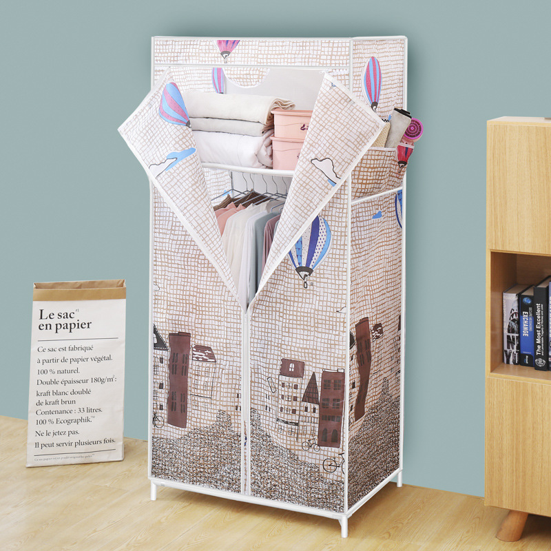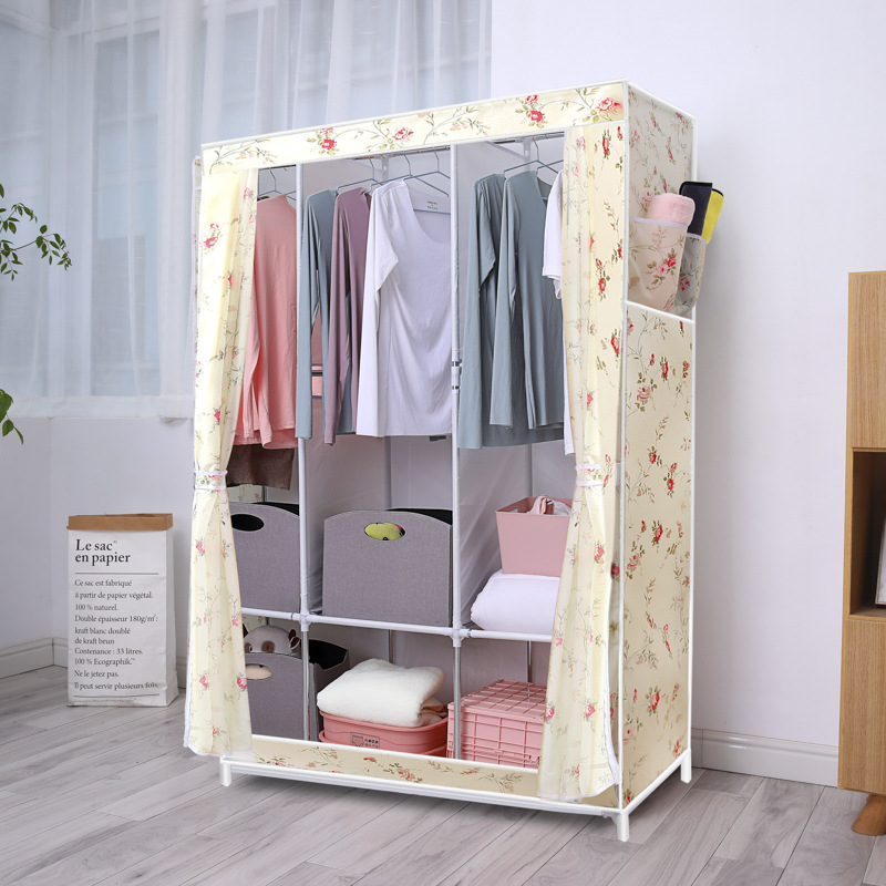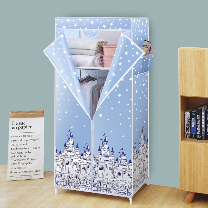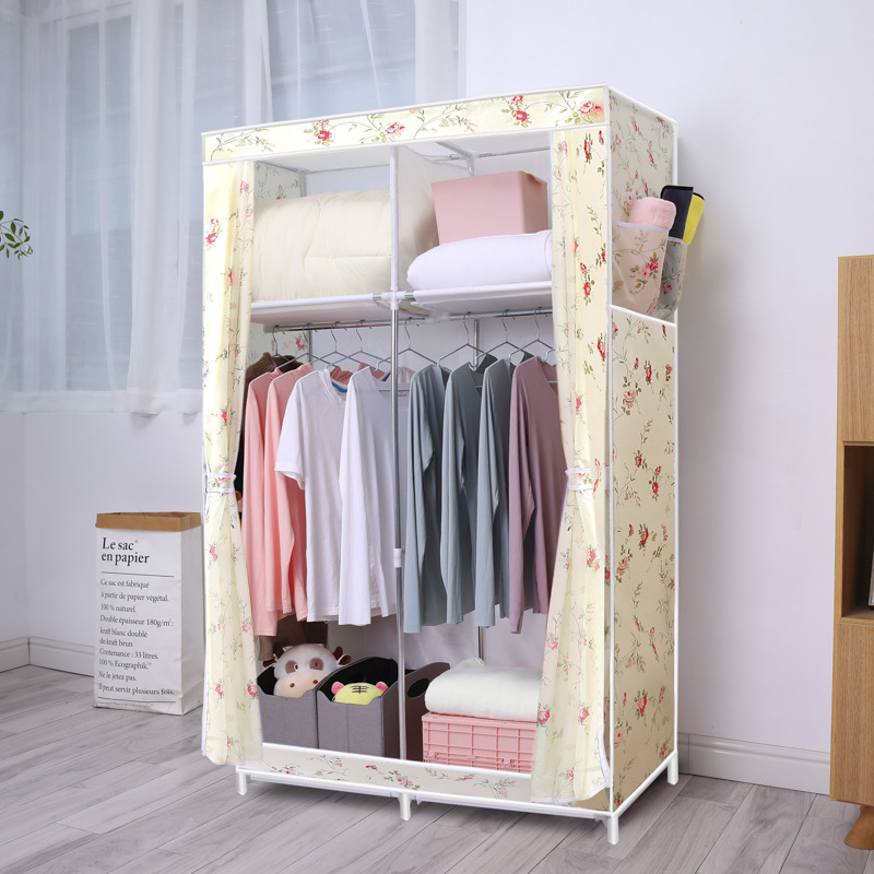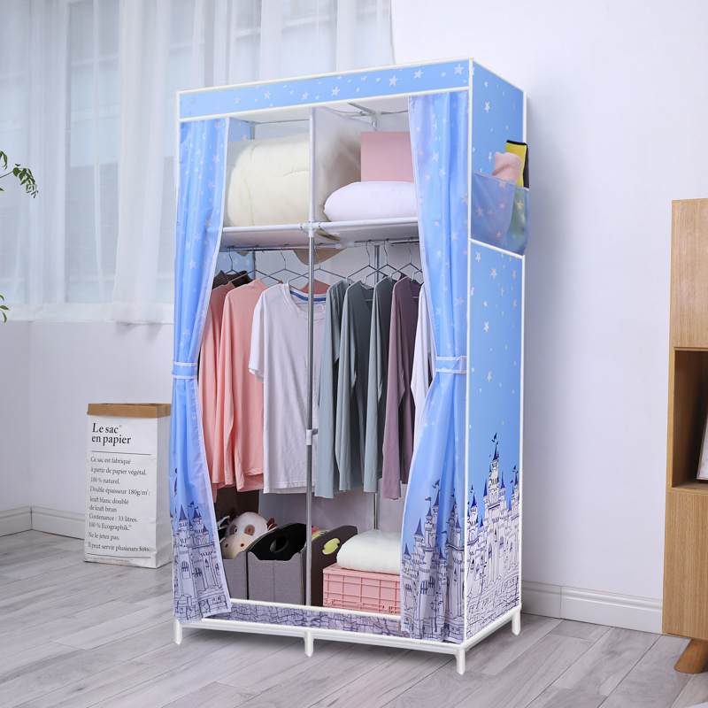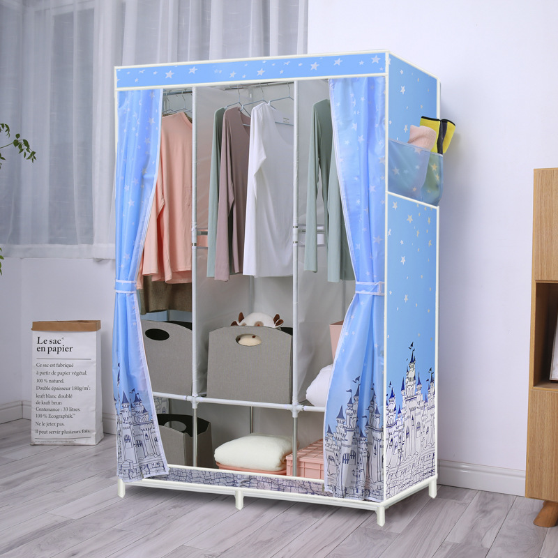 간단한 옷장 옥스포드 천 대담한 강철 프레임 조합 옷장 가정용 옷장 싱글 더블 천 옷장 조립 보관 캐비닛