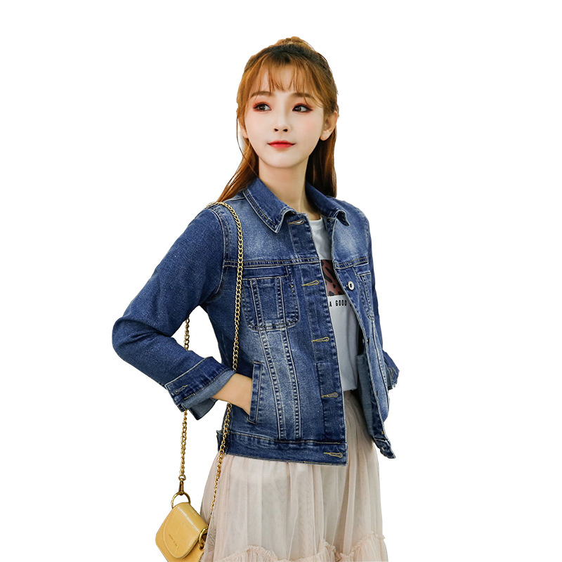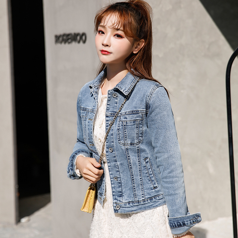 봄과 가을 한국식 캐주얼 슬림 핏 모든 매치 짧은 단색 긴 소매 짧은 재킷 스트레치 데님 여성 재킷 탑스토어 가기