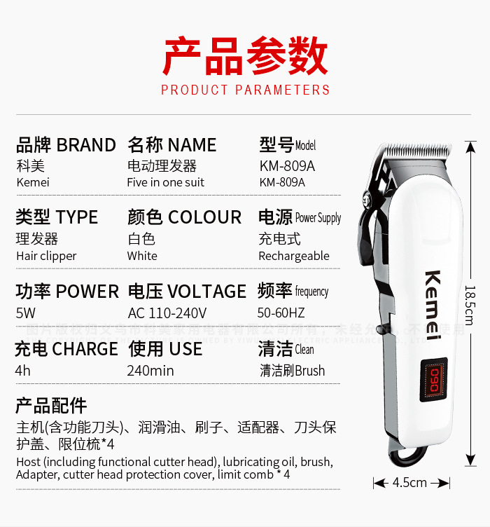 새로운 코미 KM-809A 헤어 클리퍼 전기 면도 헤어 클리퍼 전문 전기 클리퍼 헤어 살롱
