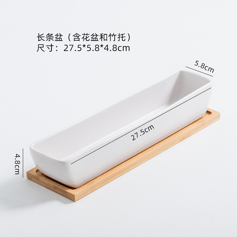 간단한 직사각형 스트립 작은 도자기 냄비 꽃병 다육 식물 다육 세라믹 트레이 꽃 냄비 컨테이너스토어 가기