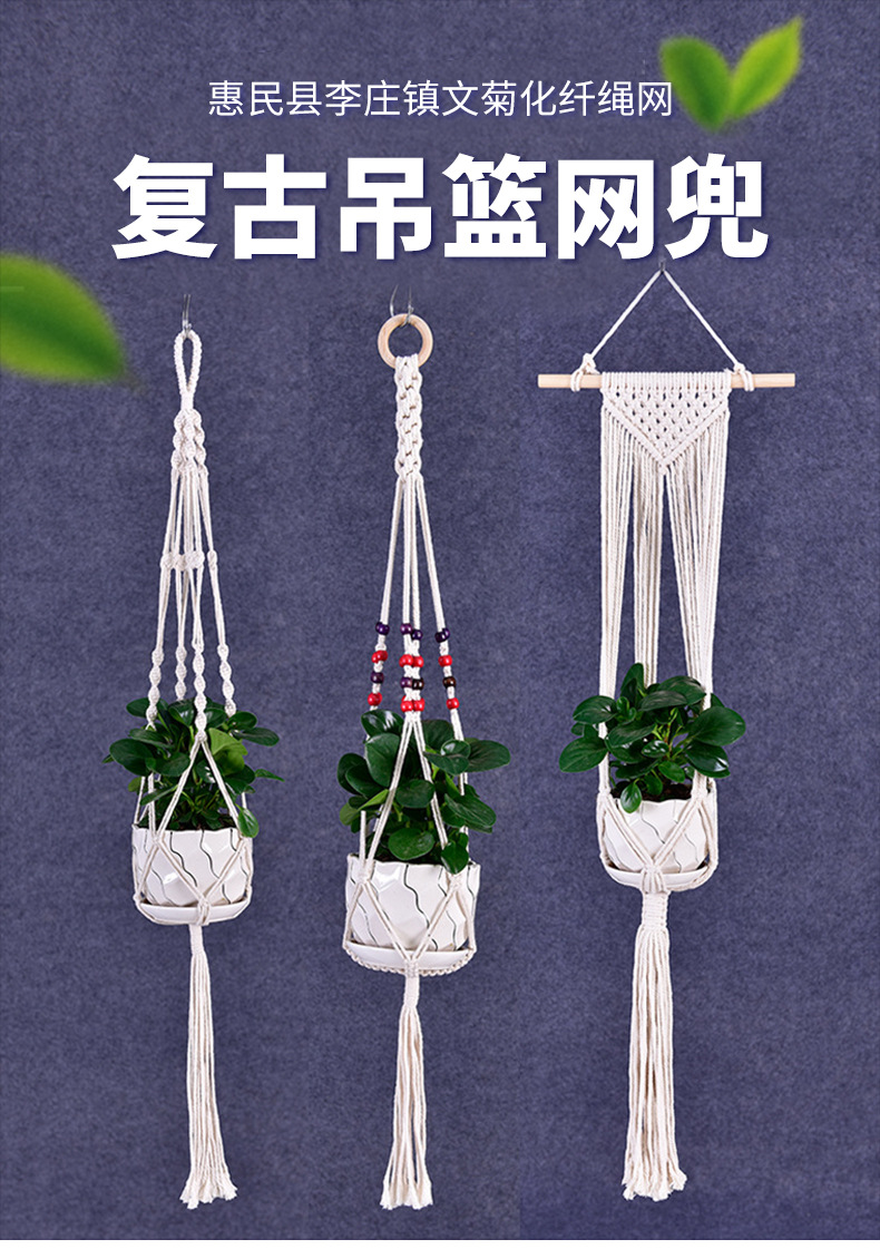 수제 꽃화분 네트백 걸이줄 수납 화분대 실내외 걸이형 네트백 면줄 꽃화분 걸이바구니스토어 가기