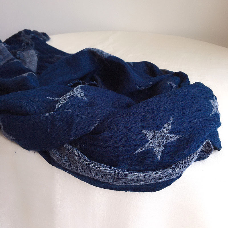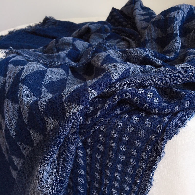 Daifa 일본 바틱 티베트 블루 스카프 여성용 물방울 무늬 삼각형 5 개 별 더블 레이어 자카드 숄 2023 새로운 스타일스토어 가기