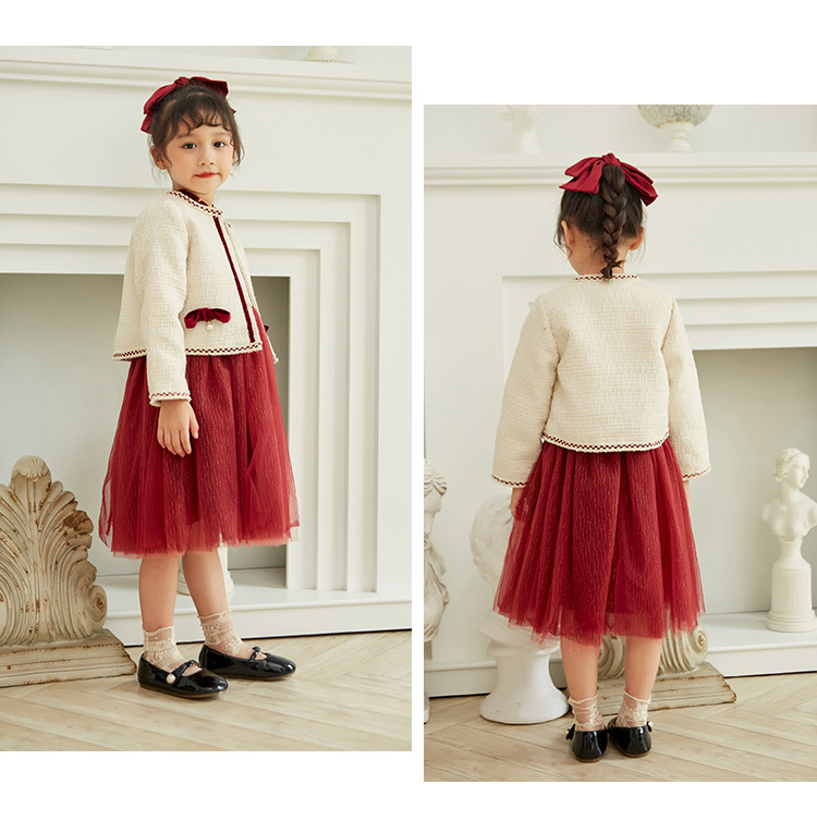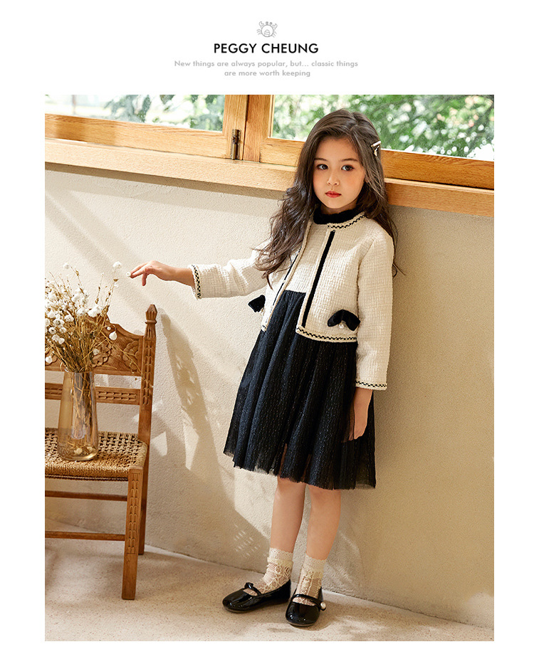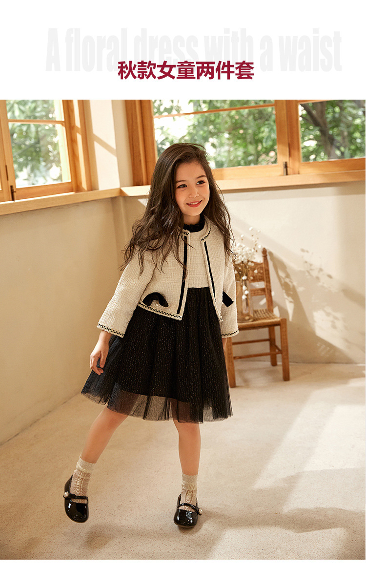여아용 작은 프랑스 스타일 세트 2026년 신상 봄옷 트렌디하고 세련된 여아용 재킷과 드레스 투피스 세트 아동복스토어 가기