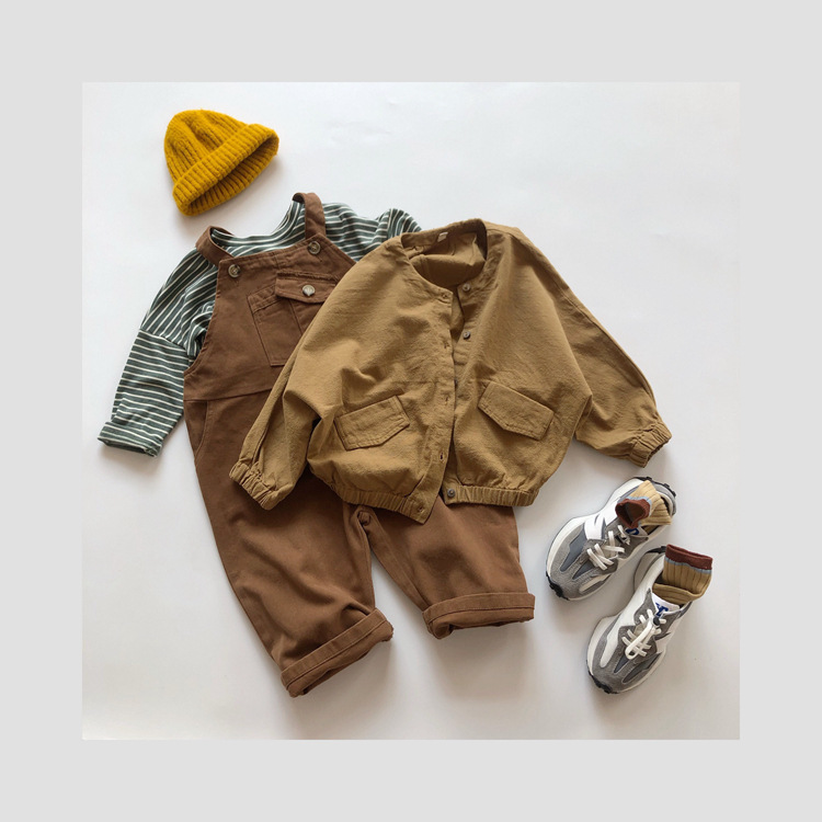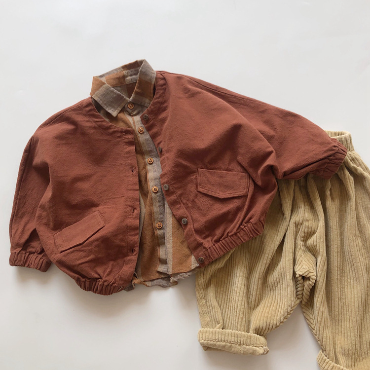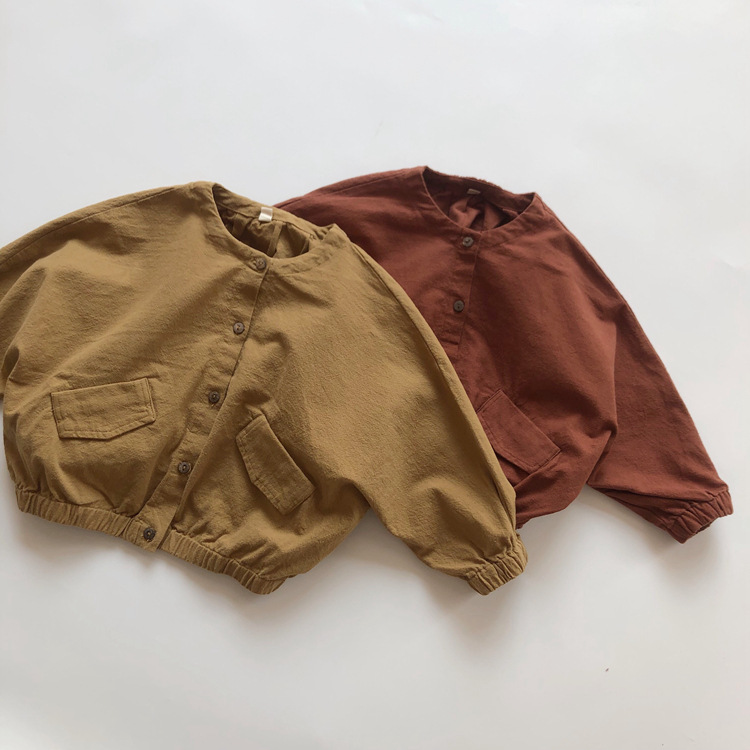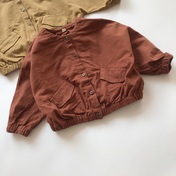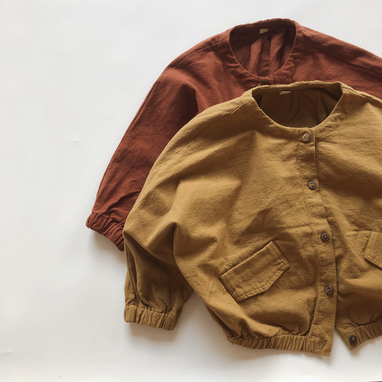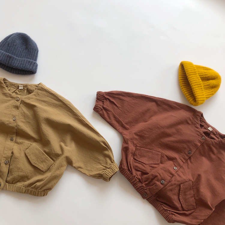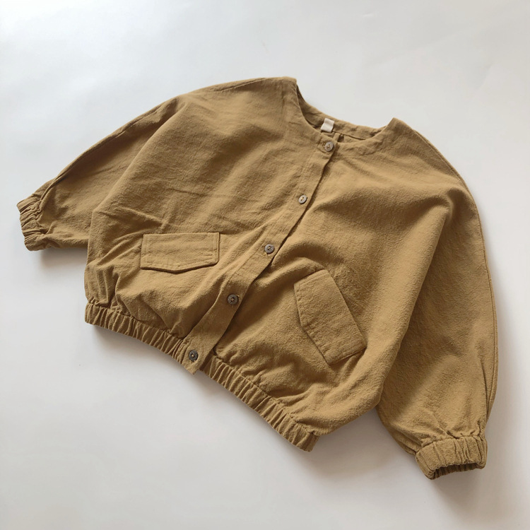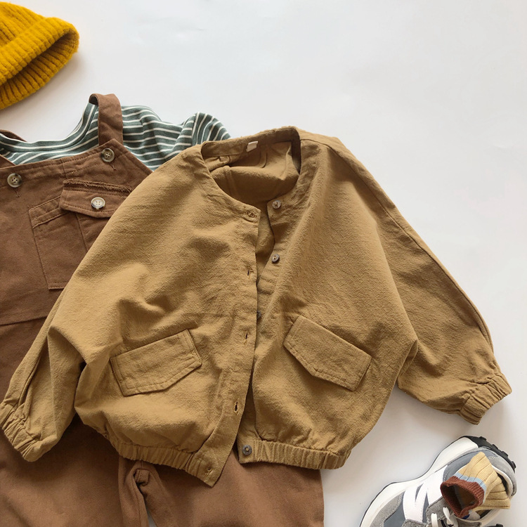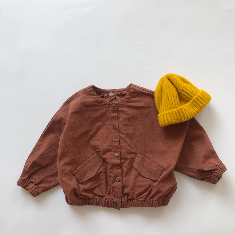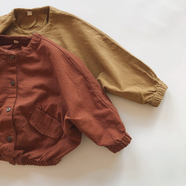 소년과 소녀를위한 봄과 가을 한국 어린이 코트 린넨 코튼 칼라리스 모리 박쥐 슬리브 카디건 크루넥 코트스토어 가기