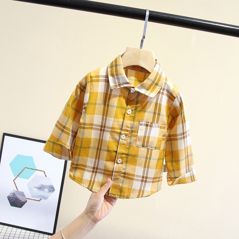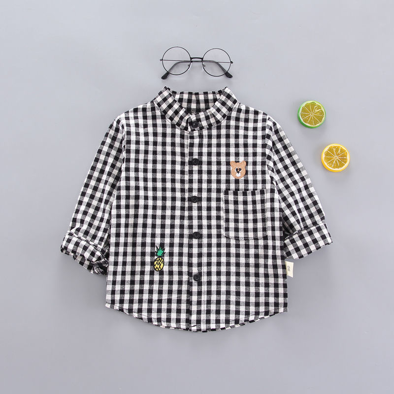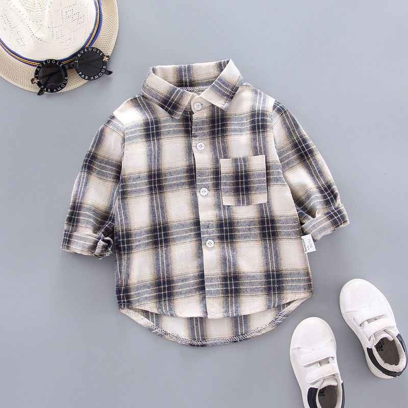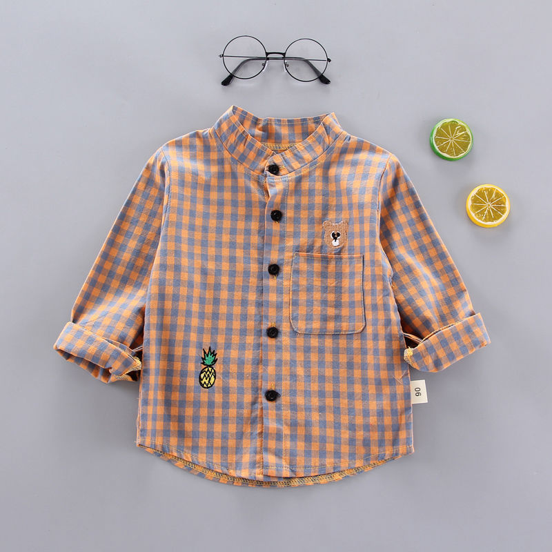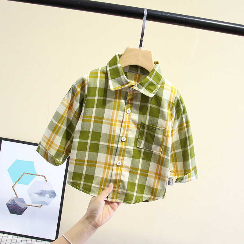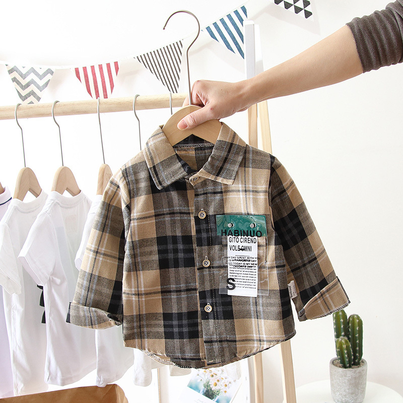 남아 긴 소매 셔츠 격자 무늬 아기의 봄 탑 어린이 가디건 어린이 서양식 어린이 봄과 가을 옷깃 셔츠스토어 가기
