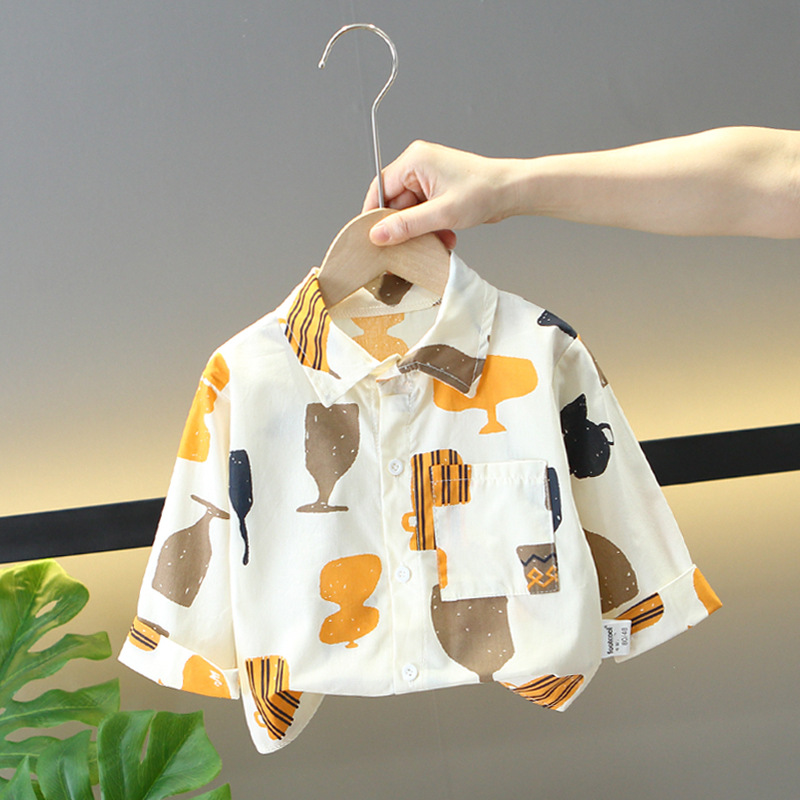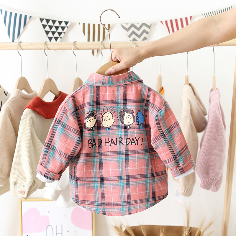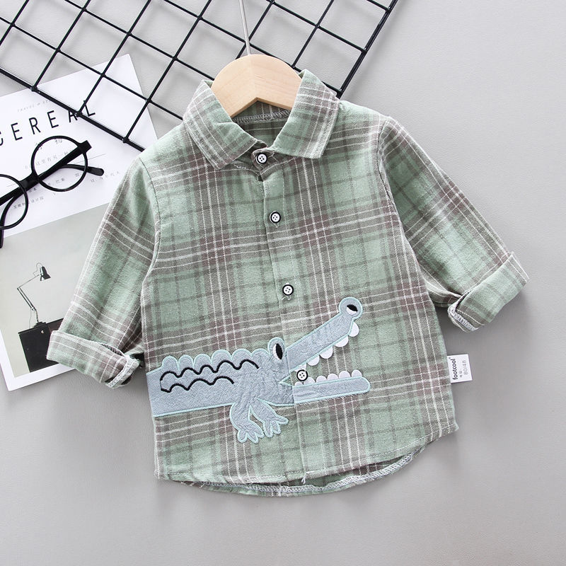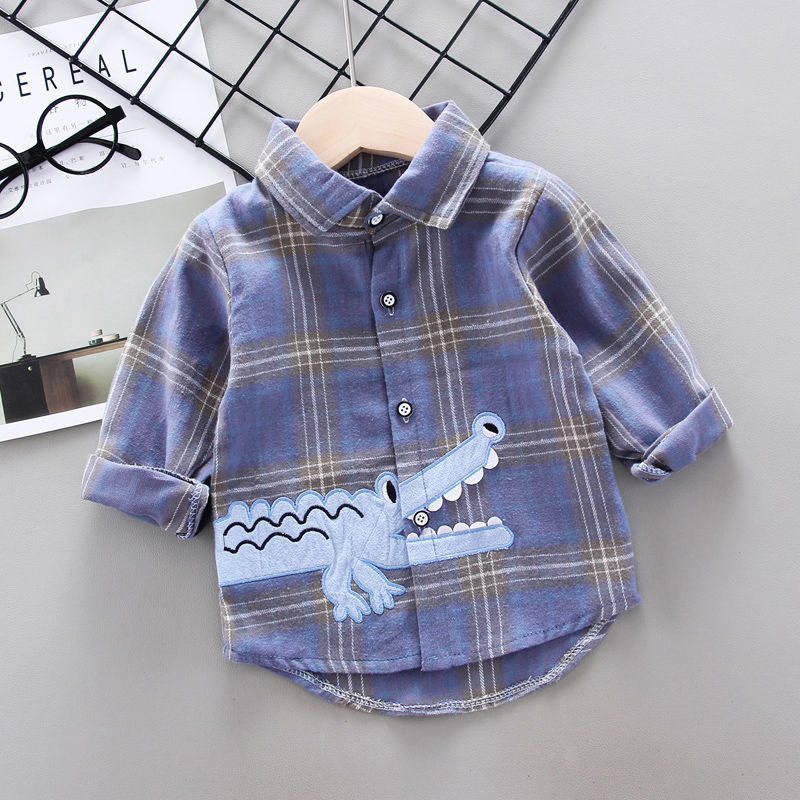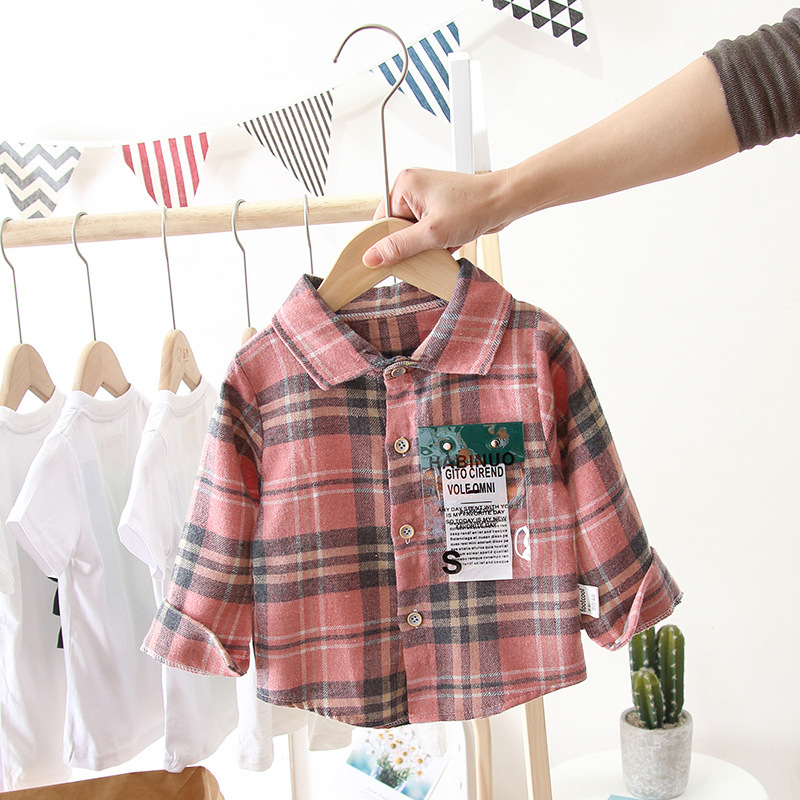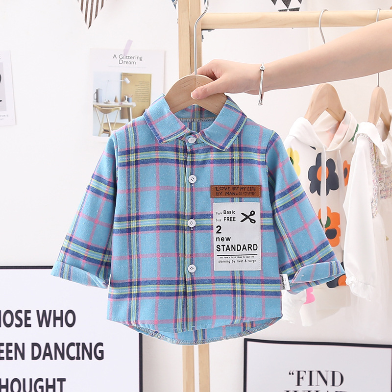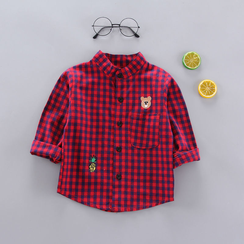 남아 긴 소매 셔츠 격자 무늬 아기의 봄 탑 어린이 가디건 어린이 서양식 어린이 봄과 가을 옷깃 셔츠스토어 가기