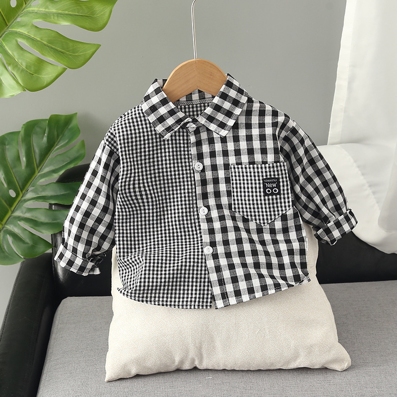 남아 긴 소매 셔츠 격자 무늬 아기의 봄 탑 어린이 가디건 어린이 서양식 어린이 봄과 가을 옷깃 셔츠