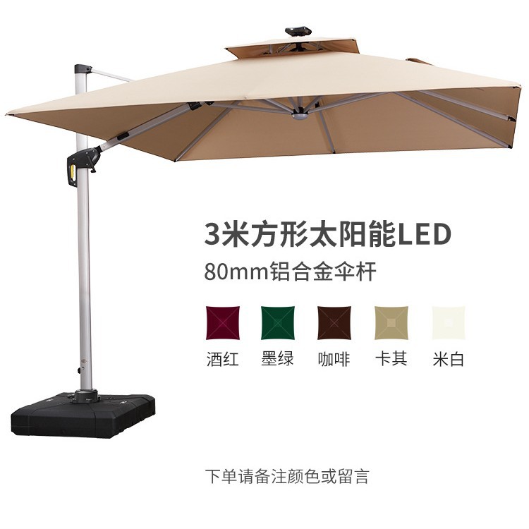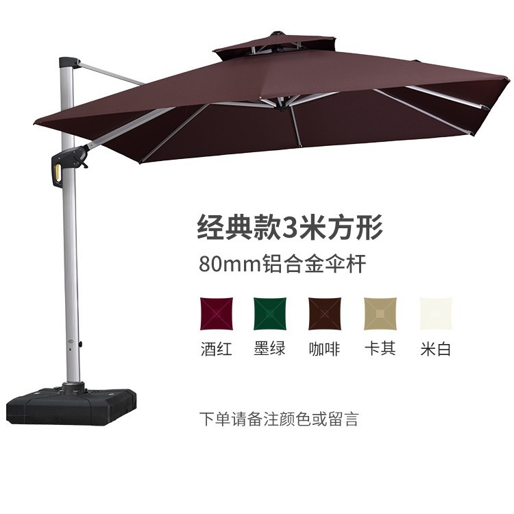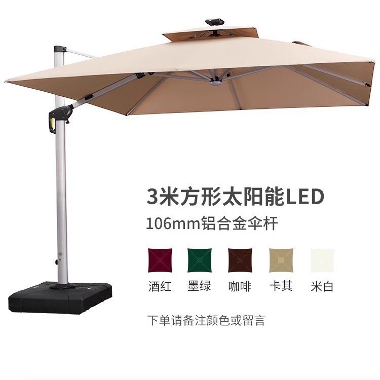 • [럭셔리 모델] 3m 스퀘어 카키 [95mm 티크 컬러 알루미늄 폴, 210kg개의 바퀴 달린 물 및 모래 충전 베이스]