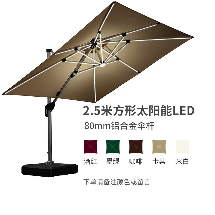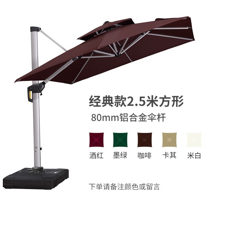 • [럭셔리 모델] 2.5m 스퀘어 카키 [95mm 티크 컬러 알루미늄 폴, 185kg개의 바퀴가 달린 물 및 모래 충전 베이스]