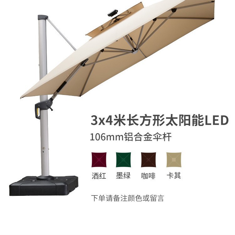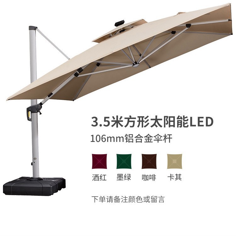 • [럭셔리 모델] 3.5m 스퀘어 카키 [95mm 티크 컬러 알루미늄 폴, 210kg개의 바퀴 달린 물 및 모래 충전 베이스]