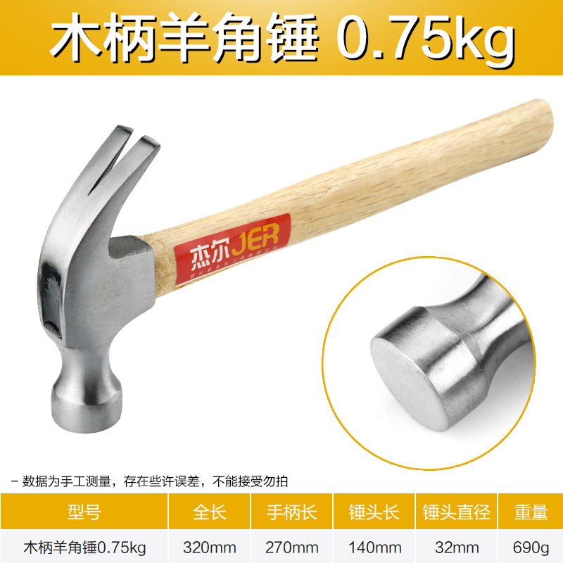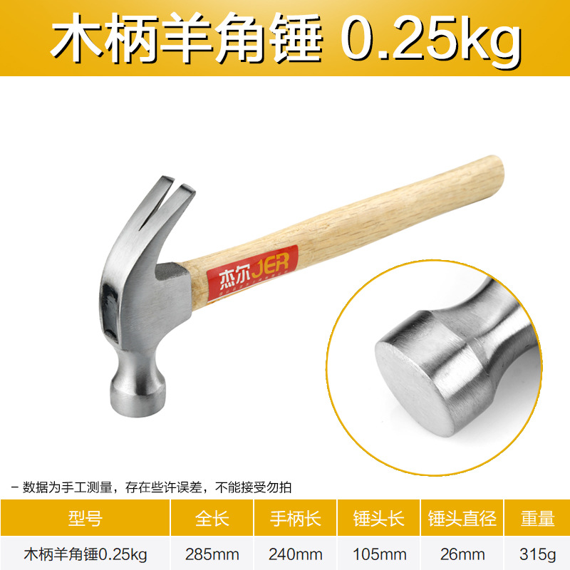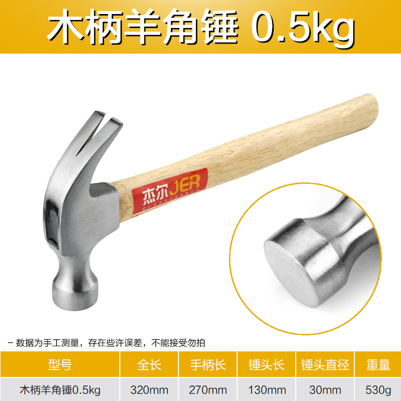 가정용 나무 손잡이 발톱 망치 높은 탄소강 작은 망치 철 망치 네일 해머 0.5kg 미끄럼 방지 나무 작은 망치